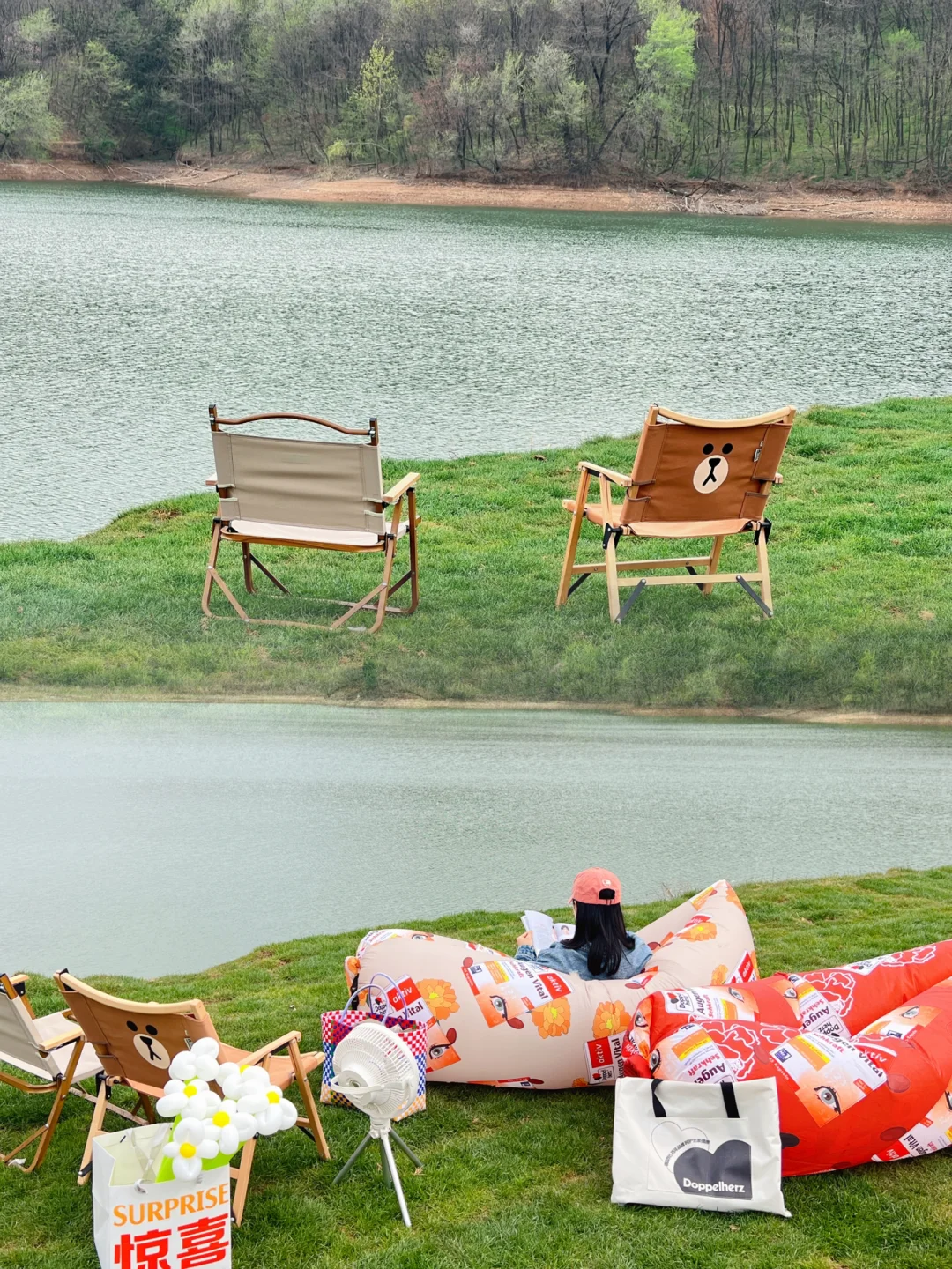 周边几分钟路程还有一个湖畔星空露营地。营地附近有一个凸出的亲水平台,拍照的最佳点位,很出片。可以直接导航湖畔星空露营地,临潼韩峪村。可以自带装备,提供水电可烧烤明火。营地也可提供装备烧烤,人均150左右。