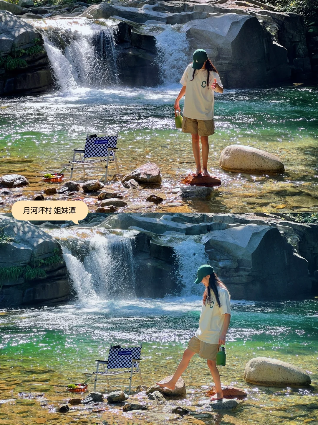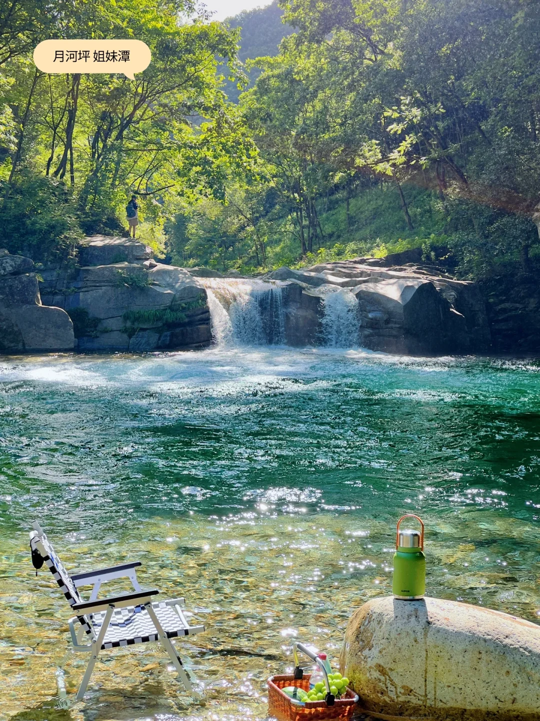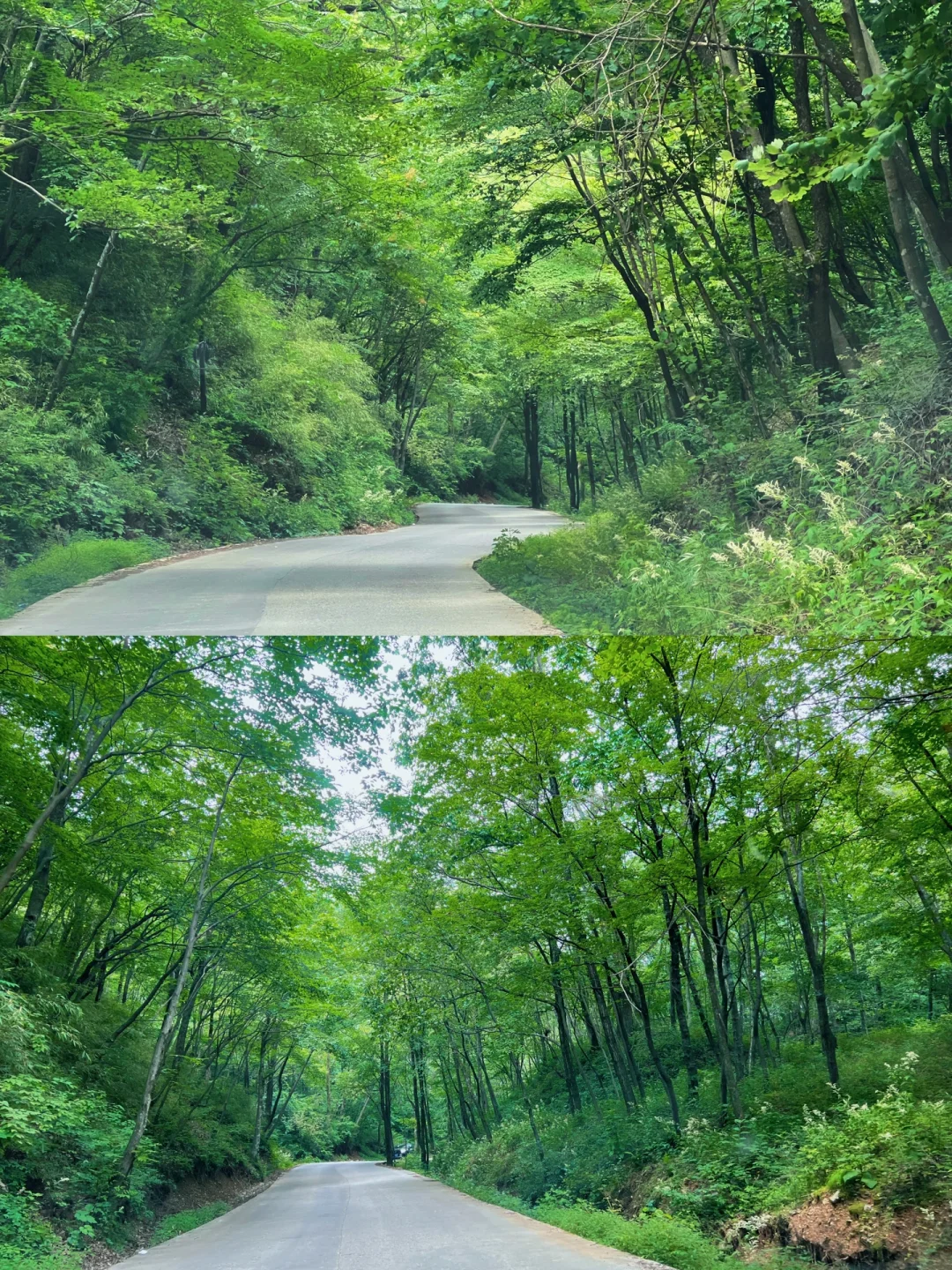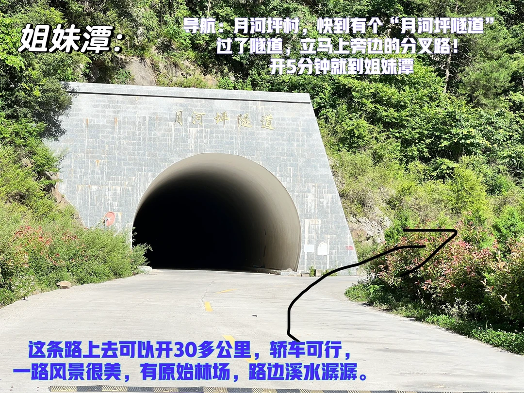 4️⃣导航月河坪村。快到会有一个“月河坪隧道”,近挨着隧道口有条拐上去的路。大概几分钟1公里左右,就到姐妹潭。姐妹潭这条路特别美,郁郁葱葱树林,旁边是溪流。