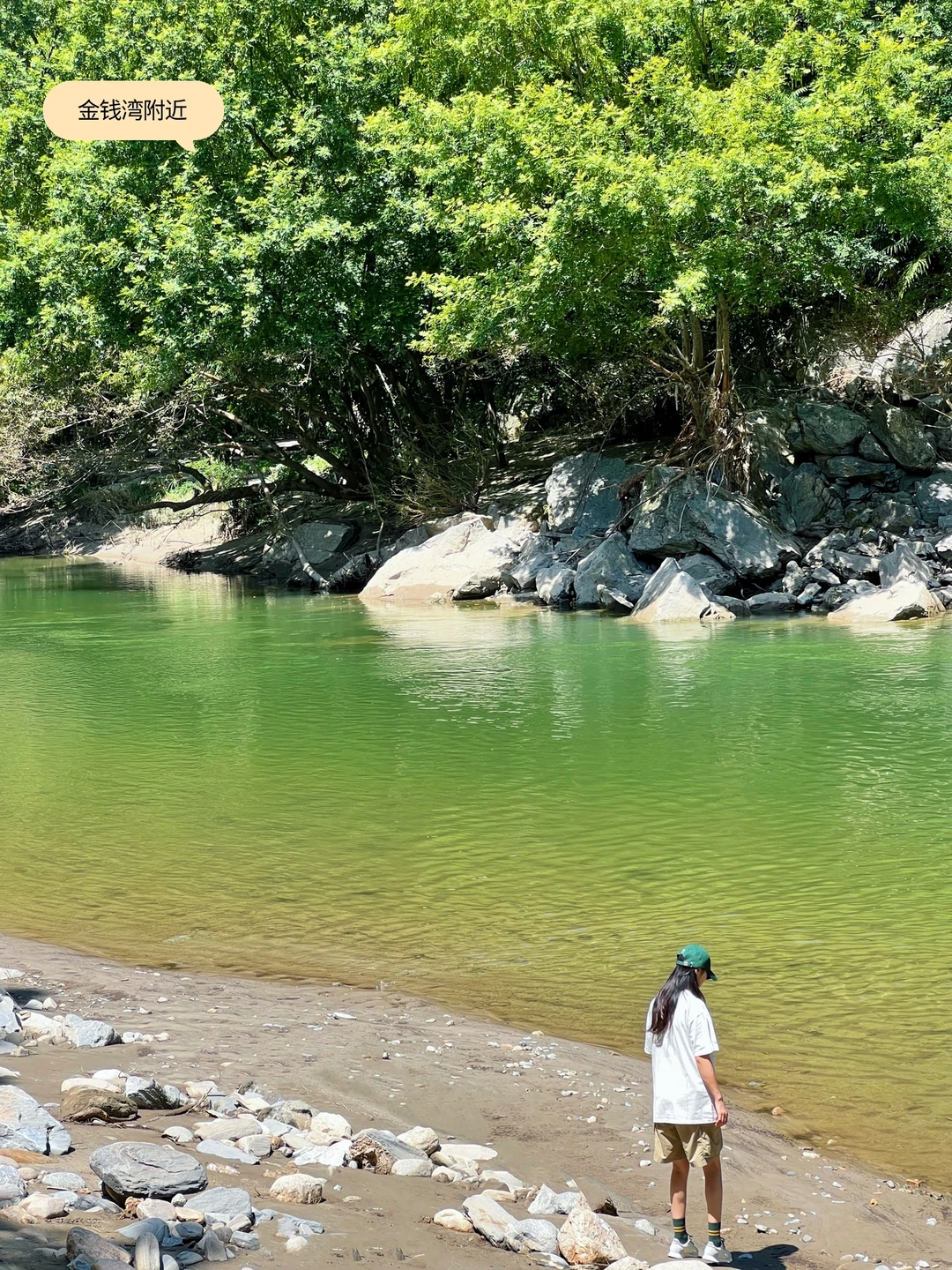 1️⃣导航金钱湾,到了后继续再开几百米,沿路几公里全是绿色的沙子地潭水。钓鱼浆板露营都可。去年夏天都来过一次了。