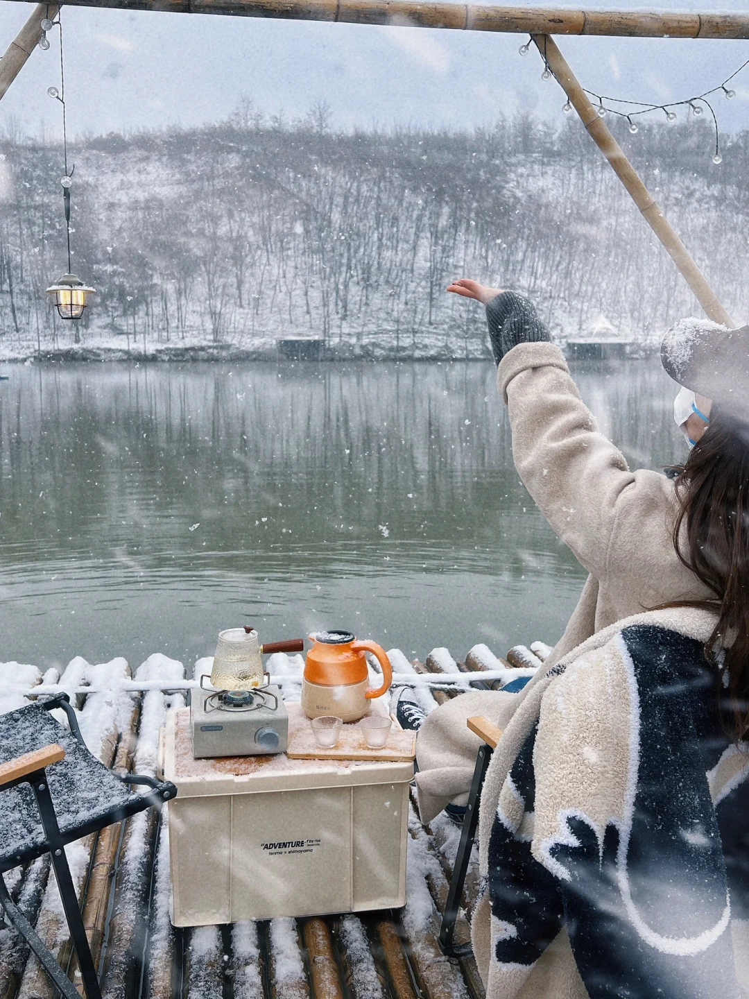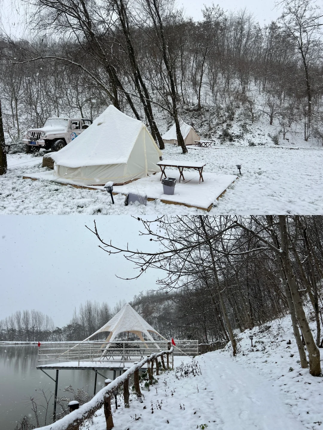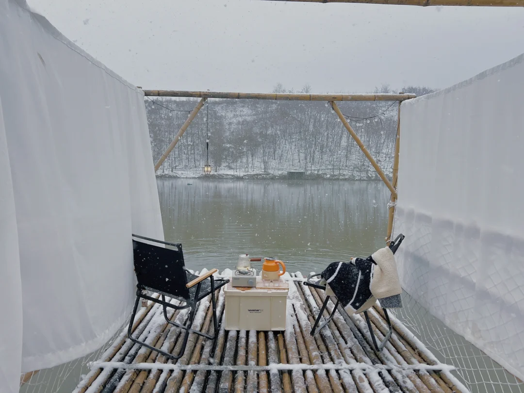 地址:长安区森月露营地,车可以开到营地跟前,路况好,不进山就可以看到美美雪景。 营位提供水电,自带装备50一人,可以篝火,都有木板可以隔寒湿,可以插电暖气,可免费钓鱼,鱼货自由。