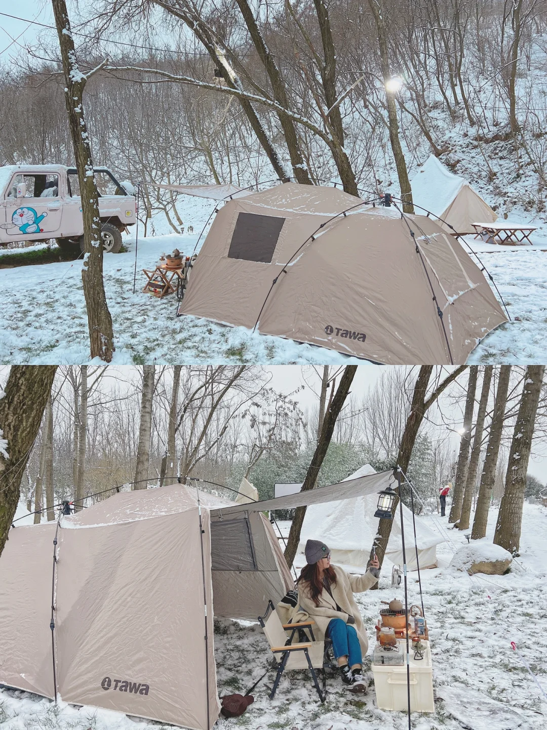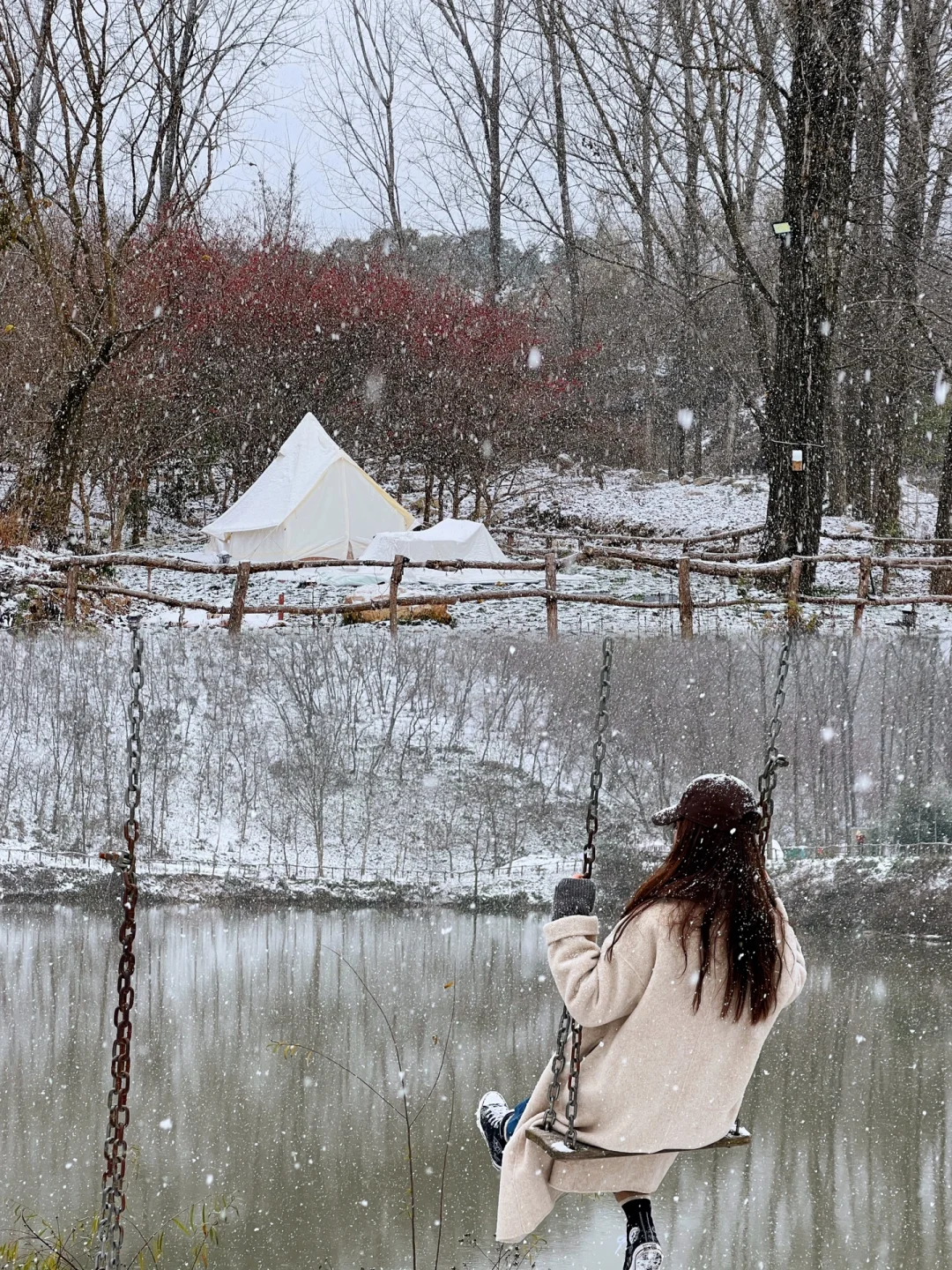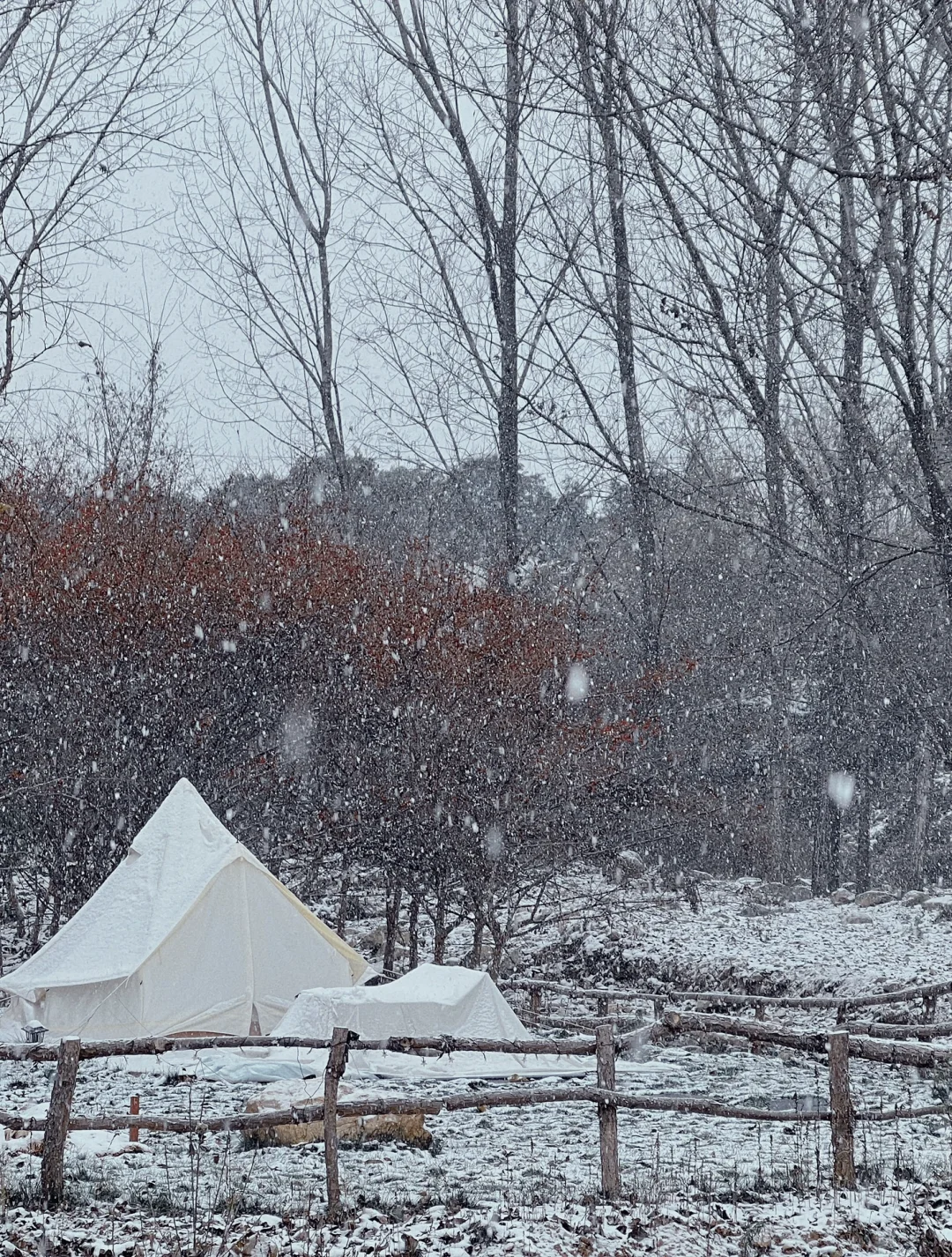 [向右R][向右R]西安的第一场雪,我在森月露营地追逐到它,好美的白雪世界,像一场童话,怎么拍都出片。