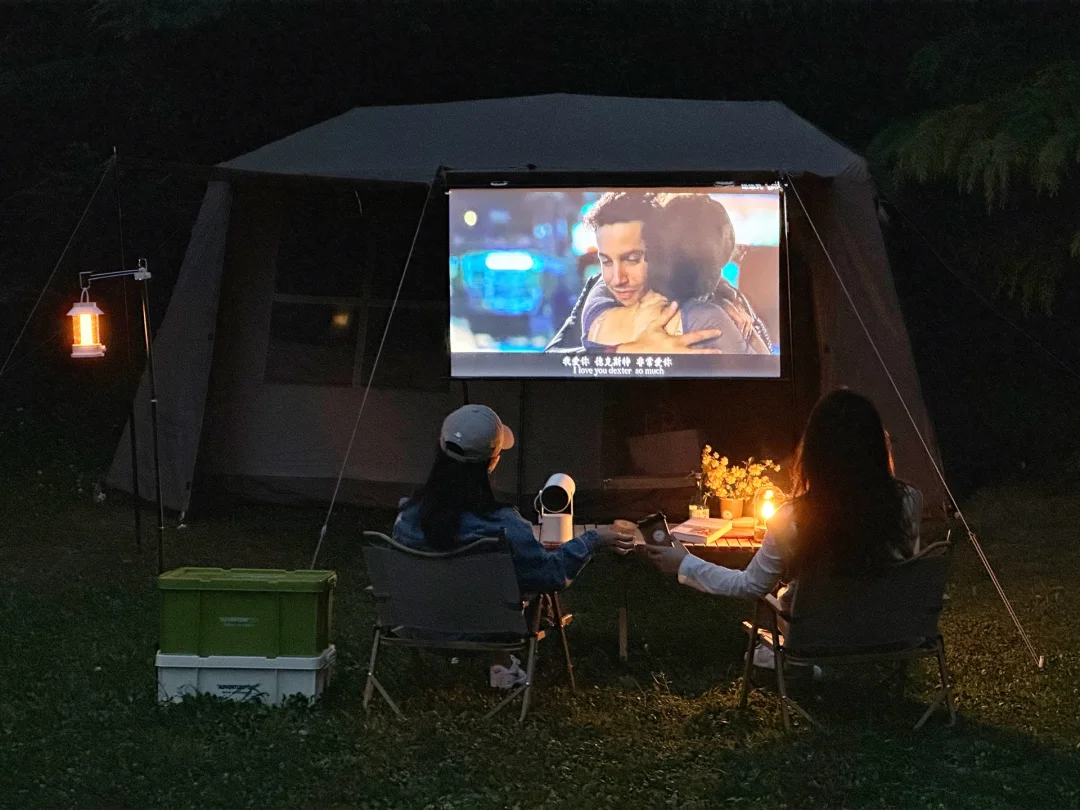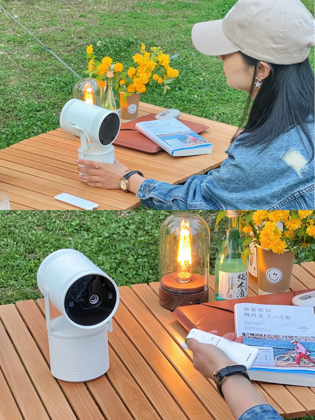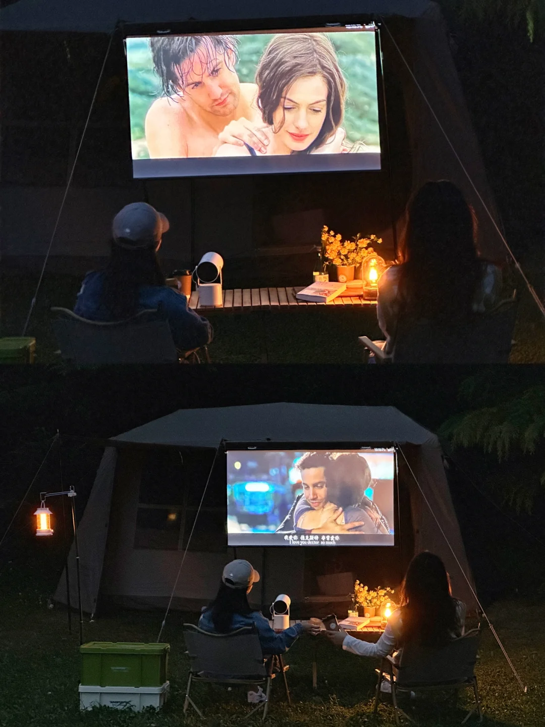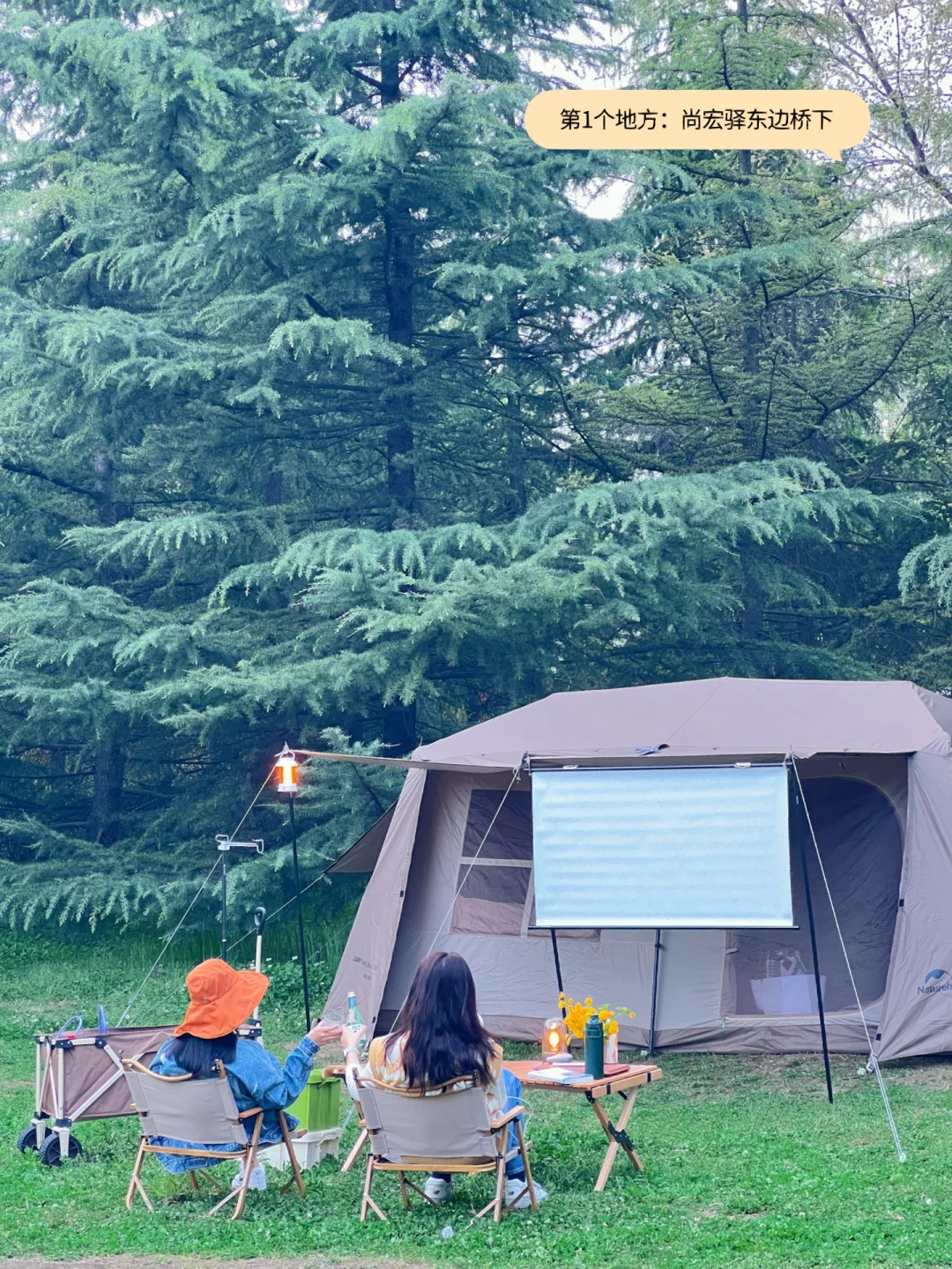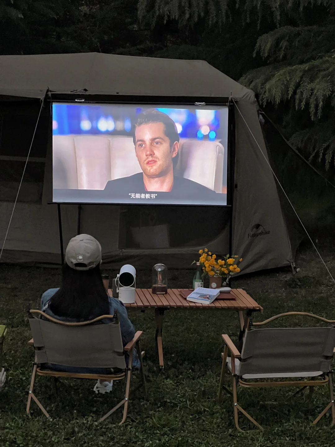 我们今天选择的是第一个位置。是一片松树林包围的露营地。开了我的新帐篷,带上我新入的三星投影仪,精致小巧,放背包一背就走了,提前充好电可以看3小时左右。还能180度旋转,想投哪里都行。过夜露营一定不能少一个投影仪哈,不然体验感会减半哦。