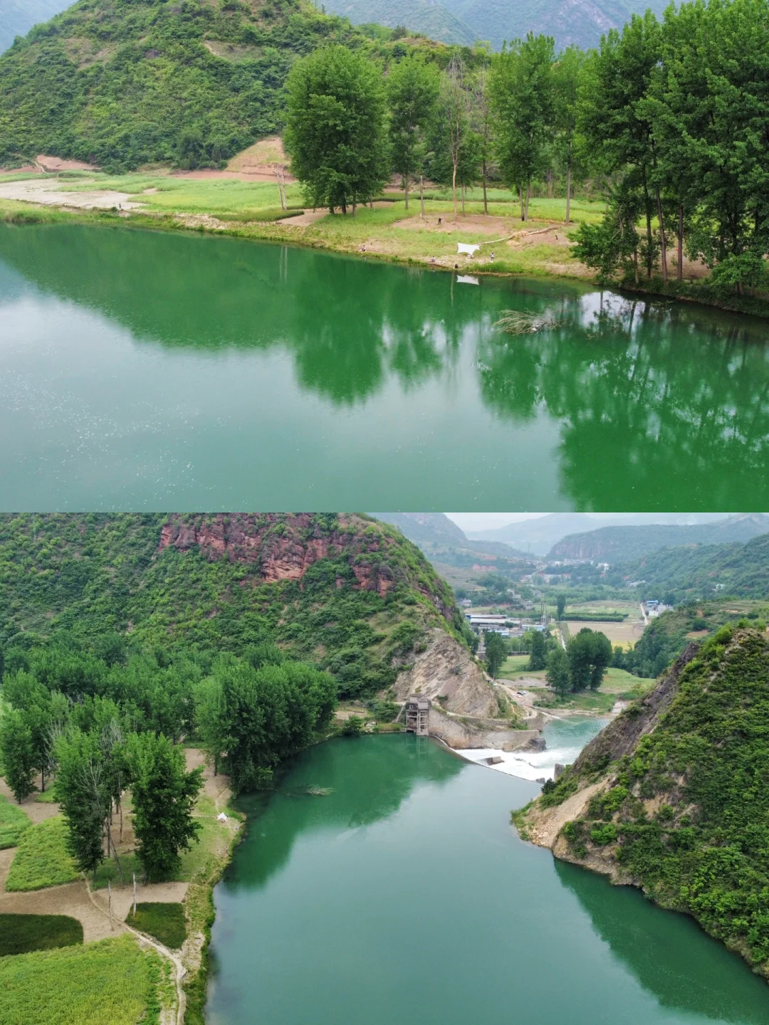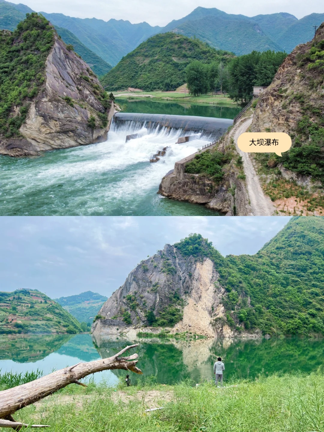 1️⃣水码头村,附近水坝大瀑布非常壮观。到了一定要走上面的坝面上看看。古镇过去15分钟