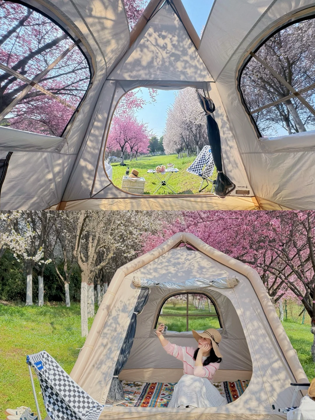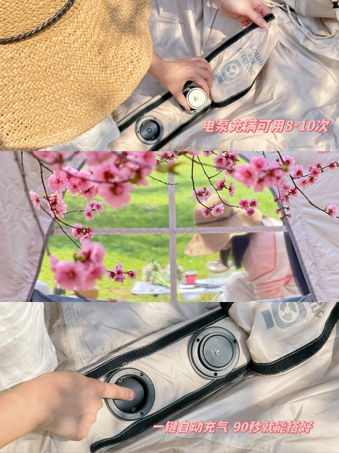 ⛺️⛺️现在越来越喜欢充气帐篷,免搭建是真的省时省力。太力的自动充气帐篷,一键自动充气,90秒就能搭建好。收纳时3秒就能放完气,叠几下装包,轻松提上就走啦。
