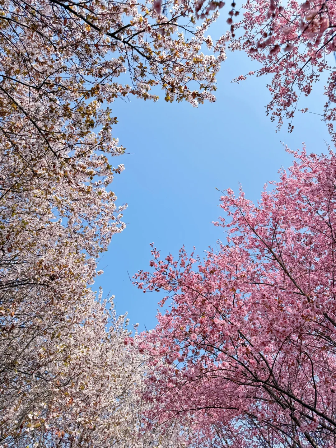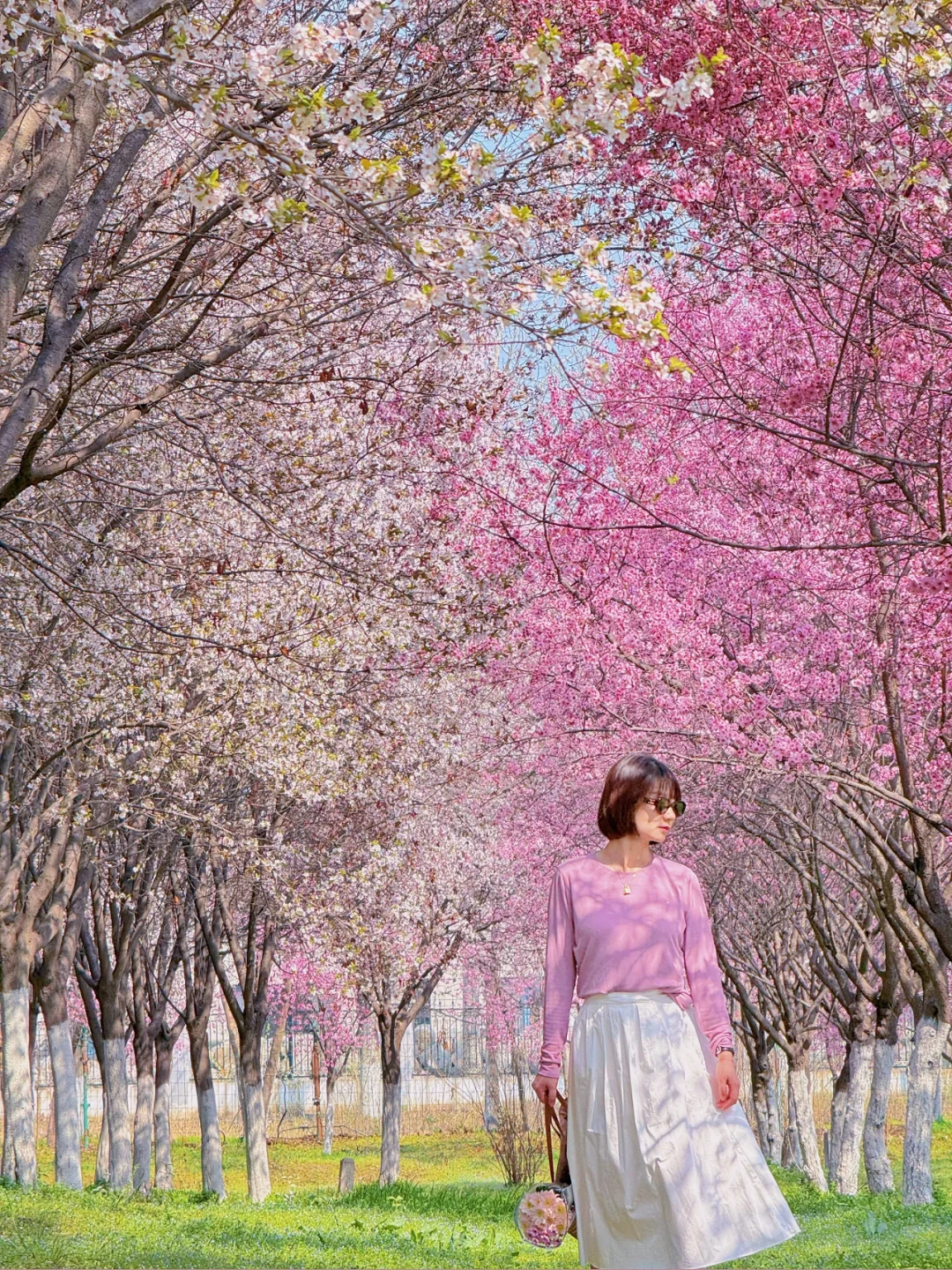 ✅✅拍照好机位:靠南边有一排紫叶李一排梅花交错在一起,用5倍焦距,人站远拍。可以拍出满屏花很美!