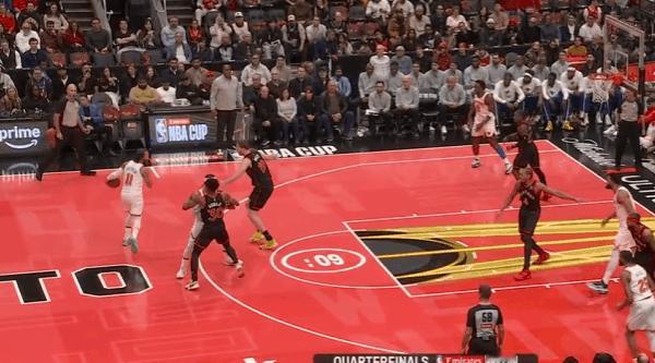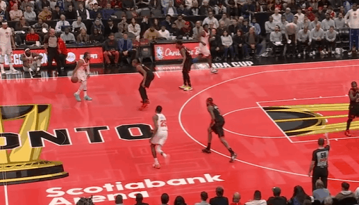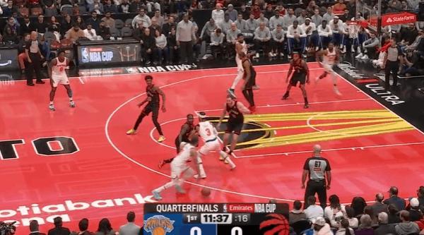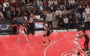 逐帧拆解:布伦森技术欣赏,对阵猛龙35分率队取胜图1和哈特挡拆要到泊头换防,开始小打大:胯下启动左路突破,遇到站Nail位协防封堵突破路线的阿巴基,立即急停并同时使用辅助手支开泊头获得投篮空间,变向换到右手合球后拉回出手持球中距离。图2和哈特“Flip”起手再衔接挡拆再次要到泊头错位,继续小打大。观察全局阵型,等哈特移动至弱侧再启动单打:推球变向衔接交叉步启动左路突破,行进至三分线边缘时迅速急停衔接背后运球拉回,直接晃飞了泊头,“脚步重置”的同时完成右手合球,出手持球三分。慢动作细节呈现:图3。图4超高位置发动“西班牙挡拆”(Stack)挡拆行进间走Z字形卡在身后,结果参与战术的克拉克森反而帮了倒忙,布伦森面对查基的延误变向换到右手并侧身护住球,随即转身变向走左路突破,行进间对抗后迅速衔接急停后仰中投,稳稳命中。图5推过半场后立即抓早期进攻和米罗衔接边路挡拆配合,佯装走掩护墙一侧,在贾科比准备处理掩护的瞬间背后运球“拒绝掩护”走右路突破。行进间面对紧追不舍的贾科比,支肘对抗能够创造一定身位距离的同时还能借力,随后迅速衔接撤步强行制造出投篮空间,后仰中投稳稳命中。慢动作细节呈现:图6。图7挡拆行进间等泊头平延误归位后再侧身往里碾,连续两次炸球沉肩对抗后立即衔接翻身后仰中投。图8、9要到巴恩斯换防后佯装和大乔衔接挡拆配合,在巴恩斯扭头观察掩护墙位置的瞬间立即推球变向启动突破,一步过掉巴恩斯后近框急停抛投躲避泊头的护框。尼克斯淘汰猛龙NBA杯