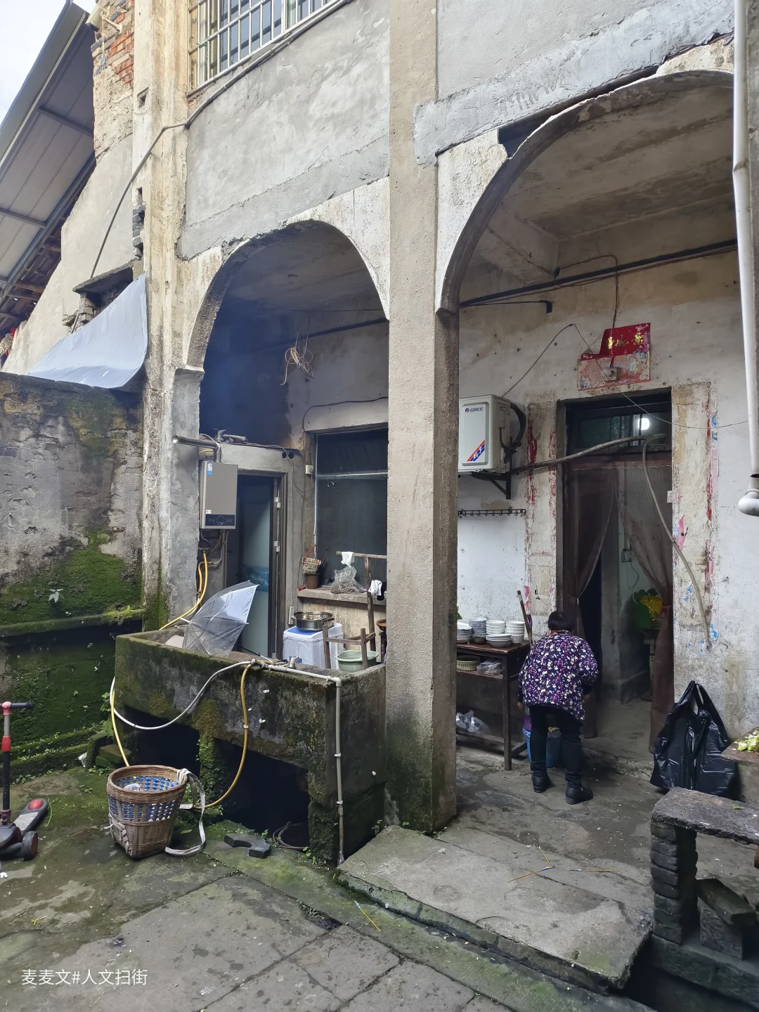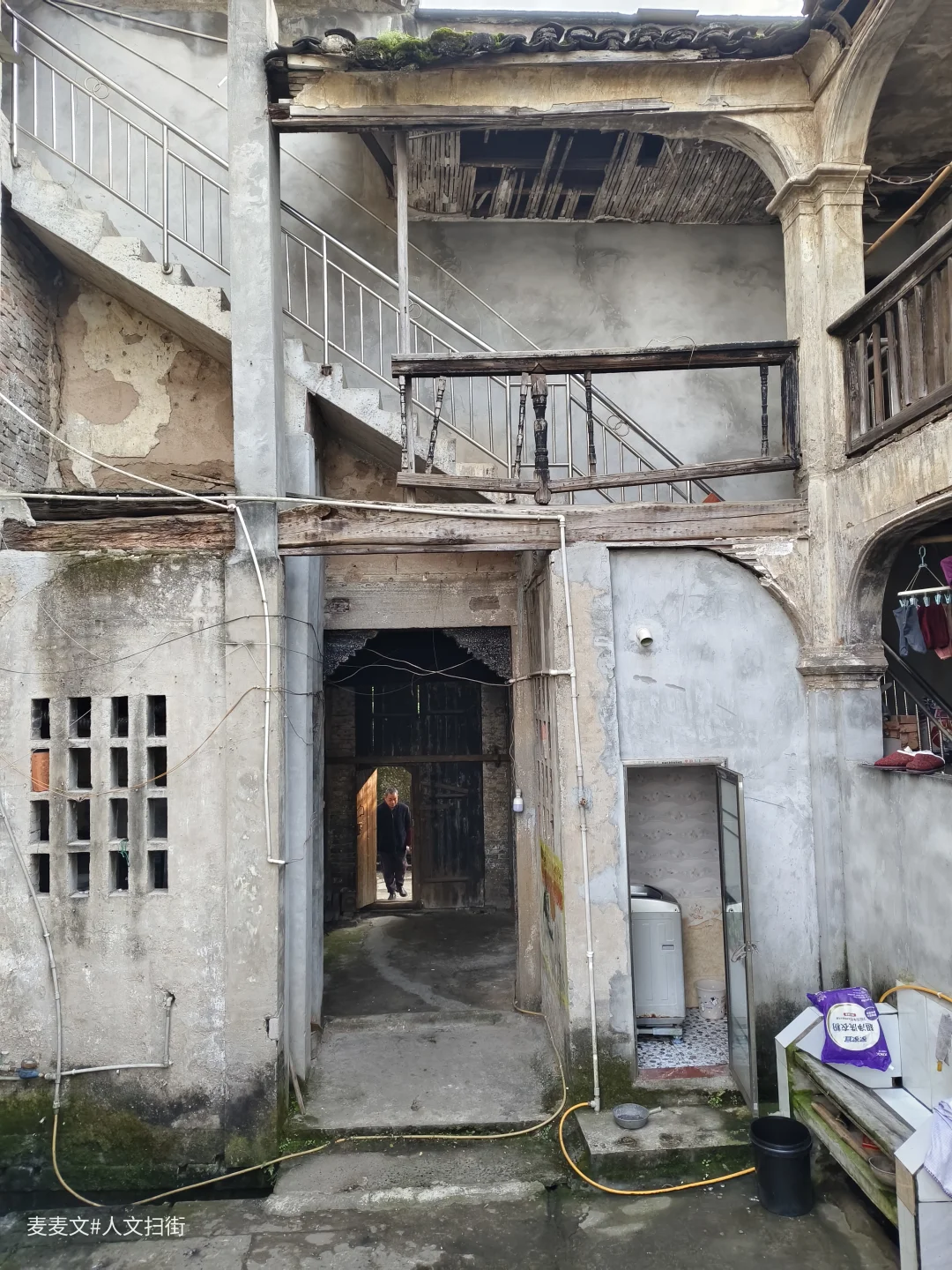 前段时间在重庆市江津区白沙古镇扫街时,偶遇一座解放前的老宅院,至今依然屹立,仿佛一位历经沧桑却依旧坚韧的长者,见证着时代的变迁。它承载着岁月的痕迹,却依然生机勃勃,如今仍有几家人在此安居乐业。 该宅院是典型的两楼一底结构,还设有露台,空间布局合理,古朴而大气。站在露台上,长江的壮美尽收眼底,波光粼粼的江面、奔腾不息的江水,和江边的东华古街构成了一幅绝美的画卷。 想当年,这里无疑是名副其实的江景豪宅,如今虽已褪去往昔的奢华,但那份独特的韵味和历史价值依然熠熠生辉,吸引着人们去探寻它的故事。