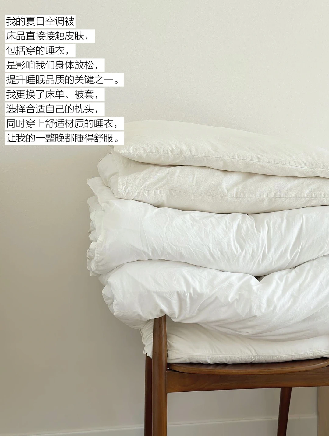 我更换了床单、被套,选择合适自己的枕头,同时穿上舒适材质的睡衣,让我的一整晚都睡得舒服。