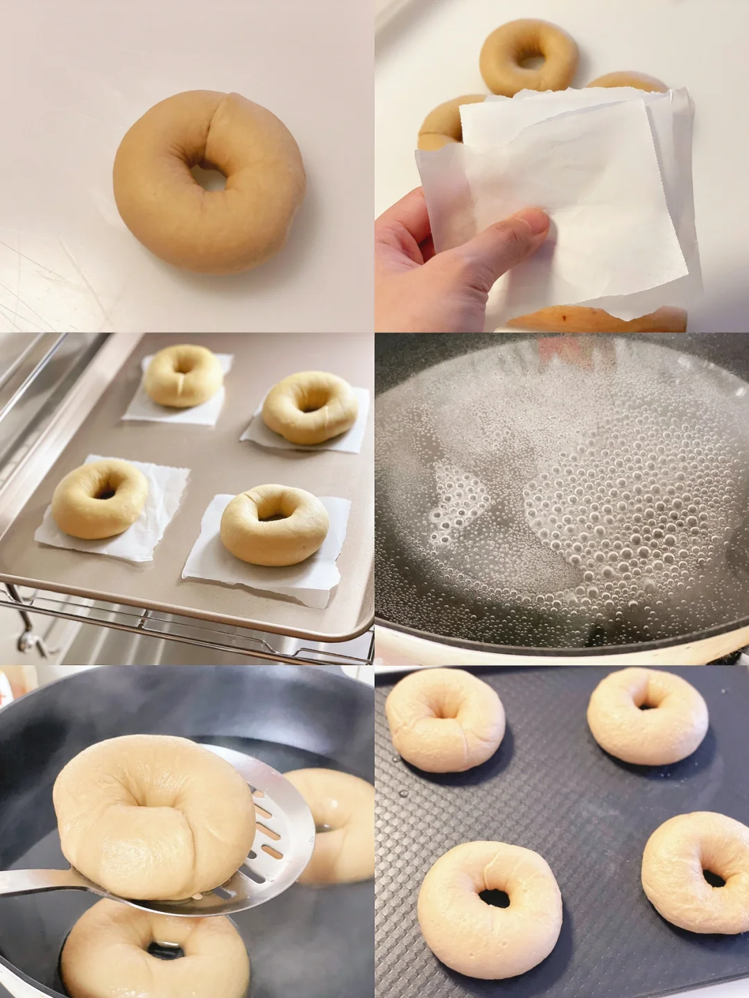 7⃣️发酵好的贝果正反面各煮20s,控干水分捞出