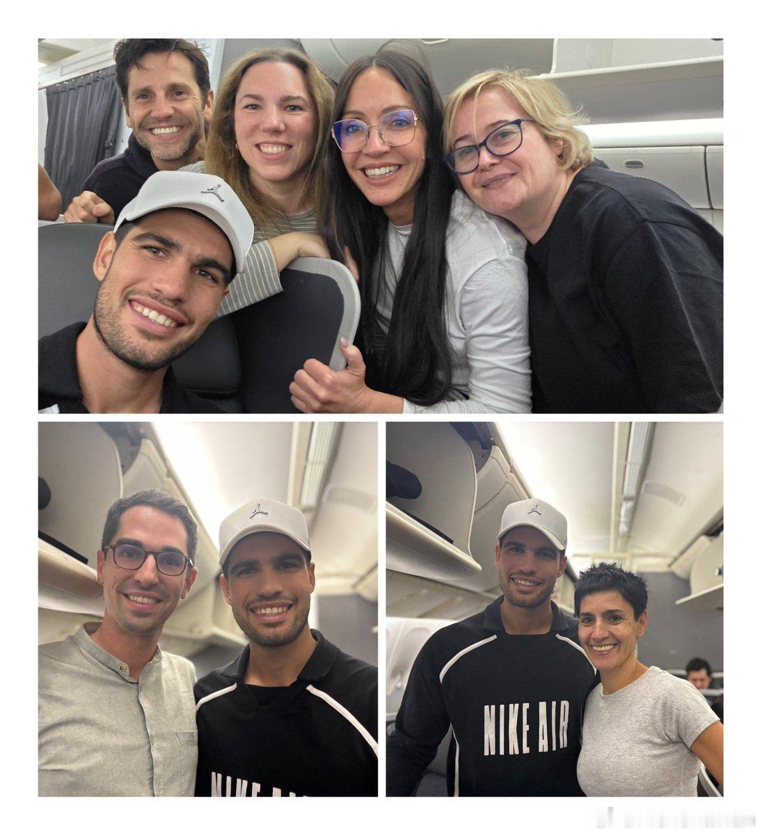 阿尔卡拉斯阿尔卡拉斯 从美国返回西班牙的家乡,下周将开始新赛季前的准备工作。小男女粉丝们在飞机上抓住鸭就是裤裤拍照🤳,当然鸭鸭心情看起来也很好👍网球talking大会