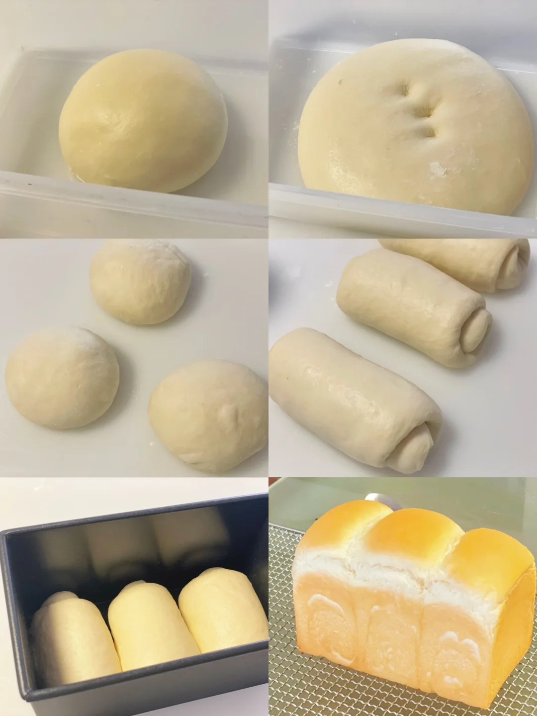 5⃣️一次擀卷,松弛20分钟;2次擀卷,三个一组入模。35度/80湿度二发至九分满