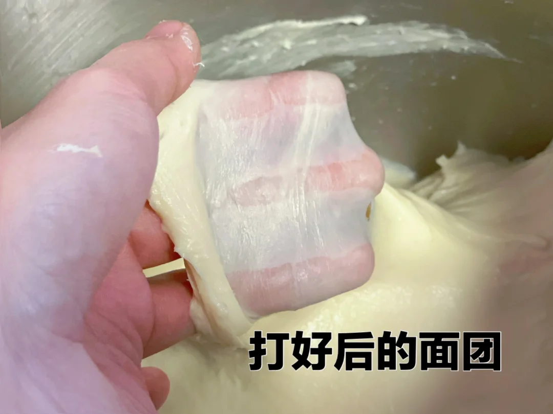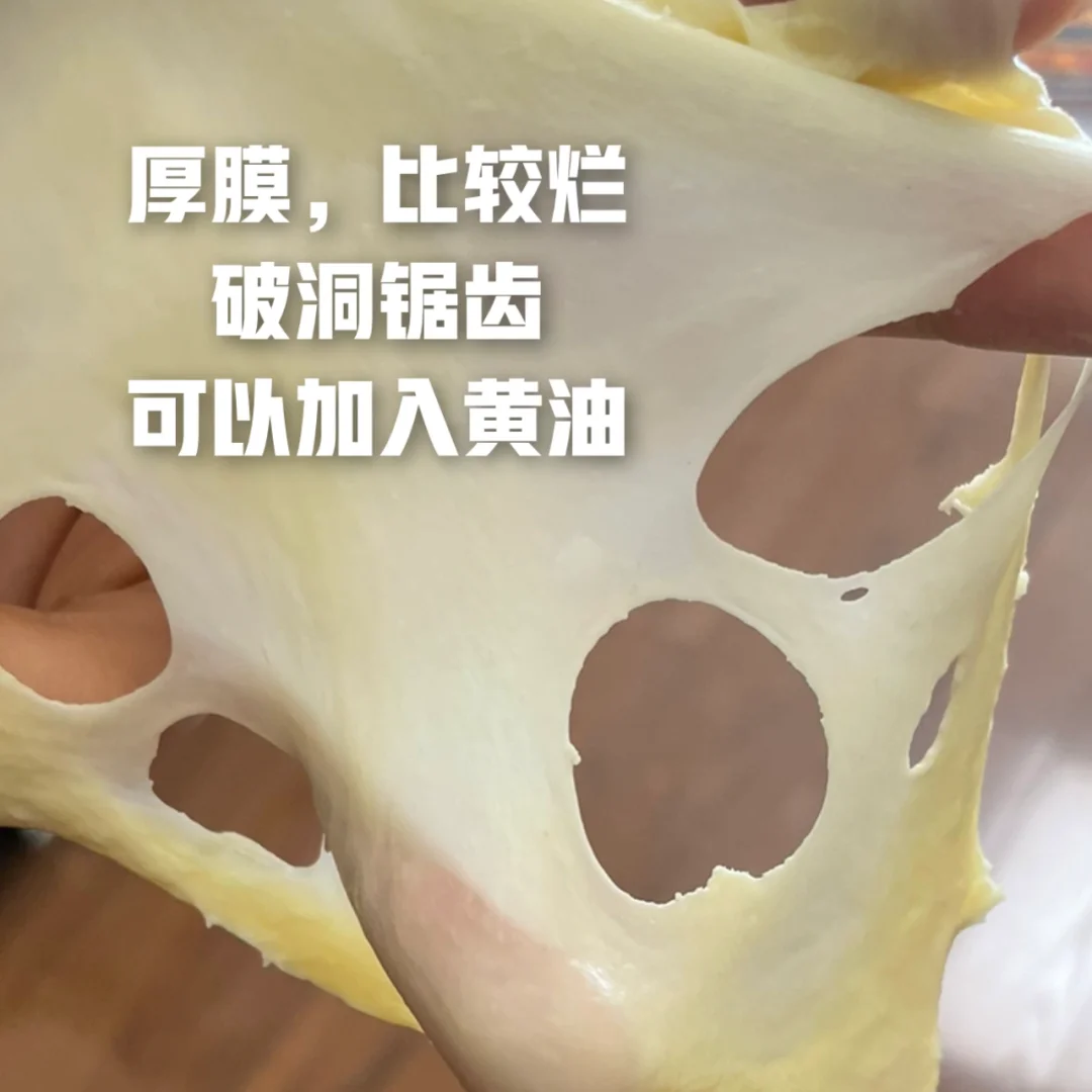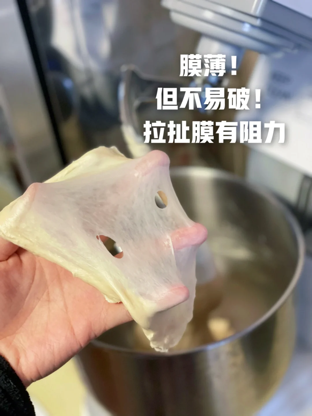 ❗️拉膜一定有阻力!不可以是那种轻易就拉一大片!即面团自身仍有张力,但又非常好延展性!