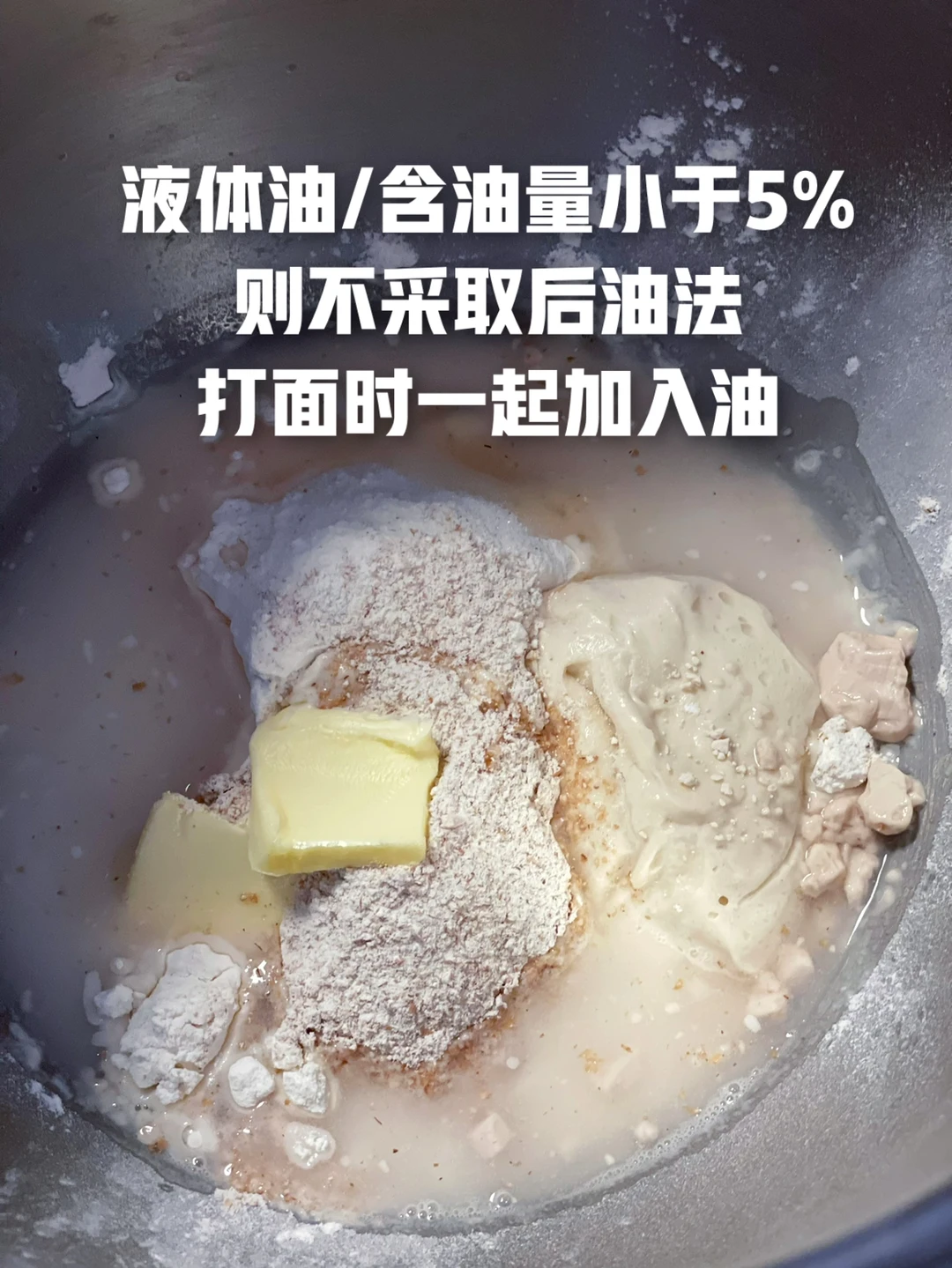 ✅不同种类面团有不同的时机;根据打面筋度要求我们需要进行改变加入油的时间,而确保面团搅打完成后是一个较好的状态。
