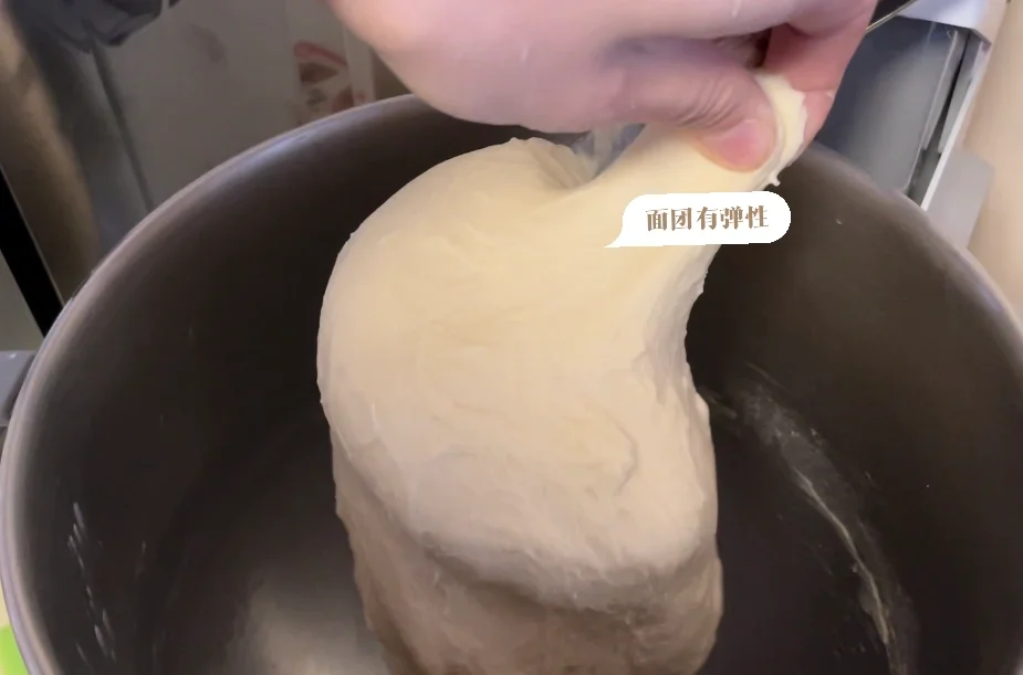 3⃣️面团仅略为粘手(你碰它,会粘,但不会粘住你的手,手脱离下来,不会有残留—面团自身的拉扯力大于粘性的粘力)