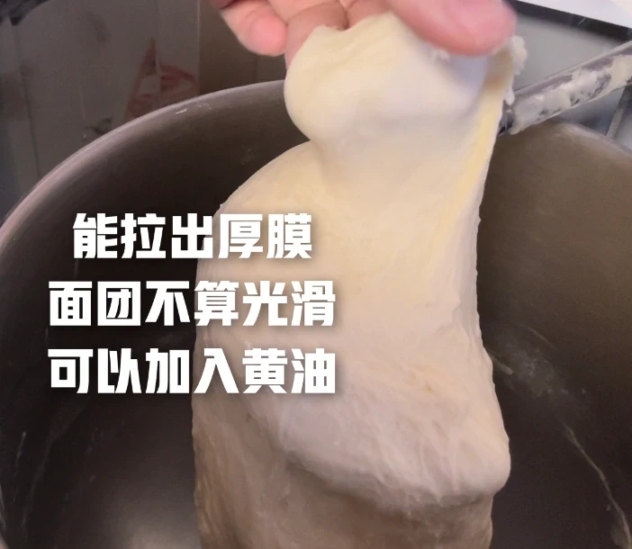 🧈加入的黄油软化程度尽可能于面团软硬程度一致;这样是最容易被面团吸收