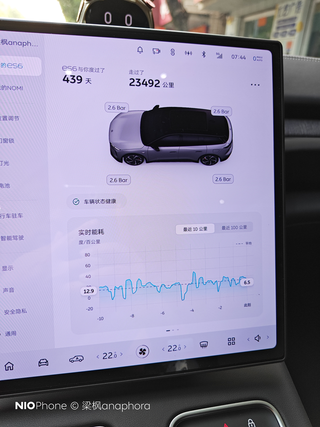 更新3.0系统后能耗又有惊喜 今天早上跑能耗测试,跑出了14.2度/100公里。 开出来跑的车是ES6,早上上班就我一人。 同样的路线,升级系统前最低也要15+。 1.第一感觉是空调不那么冷了,同样是22度4档风,座椅通风3档。平常都会冷到调成2档风。看车能耗表也发现,环节舒适只消耗5%的电。 2.驾驶辅助能耗有优化,这项仅消耗2%。 3.感觉动能回收更强了,回收功率都到100KW了,提升了动能回收销量。 ES6续航从之前490,提升到现在500。真的不只是数字多了10,能耗确实有降低的。