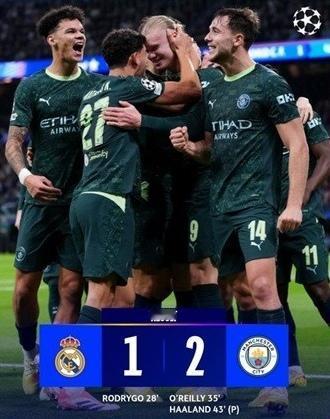 欧冠焦点战曼城客场2-1逆转皇马,奥赖利打入个人欧冠首球,哈兰德点射破门,罗德里戈进球难救主,皇马两连败,阿隆索面临着下课危机! 本场比赛皇马头牌姆巴佩虽然进入了大名单,但最终因伤没有出场,球迷们也没能看到姆巴佩和哈兰德这两人的直接较量!但这场比赛的精彩程度弥补了这个遗憾! 第28分钟,皇马打出快速反击,贝林厄姆中路分球,罗德里戈右路拿球后,小角度射门得手,皇马1-0领先! 第35分钟,曼城开出角球,格瓦迪奥尔头球攻门被扑出,奥赖利门前机敏补射破门,曼城扳平比分,皇马1-1曼城! 第43分钟,哈兰德门前抢点时被吕迪格拉倒,曼城获得点球,哈兰德亲自操刀主罚命中,曼城反超比分,皇马1-2曼城! 此后,皇马门将库尔图瓦表现神勇,多次化解了曼城的攻势,而皇马这边恩德里克的头球也被横梁挡了出来,最终双方谁也没能再次改写比分! 这场比赛虽然皇马输了球,但他们踢的并不差,进球只是差点运气!没有了姆巴佩,能进入禁区的球员变多了,能射门的人也多了,难道皇马的问题不是阿隆索,是姆巴佩?曼城本场战胜皇马后,成为自瓜迪奥拉执教曼城开始,欧冠客场战胜皇马次数最多的球队(2次)!