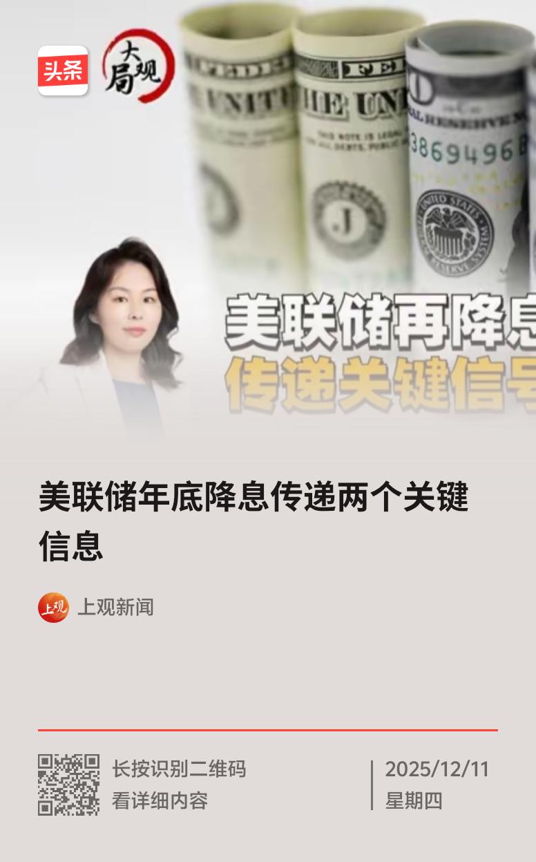 美联储年底降息传递的两个关键信息可不得了。其一,全球宽松周期正式开启。市场预期降息25个基点概率超90%,这基本意味着全球进入降息周期,明年可能还有更大力度降息。对A股而言,是三重牛市叠加,降息后钱不值钱,资产值钱,全球资本会抢核心资产,A股估值洼地不会被放过,科技股和资源股也会起飞。其二,从美联储主席鲍威尔的表态看,降息有助于稳定劳动力市场,让通胀在关税影响消退后恢复至2%的下降趋势。美股三大指数集体收涨,也反映出市场对此次降息的积极反应。 美联储降不降息 美联储利率决定