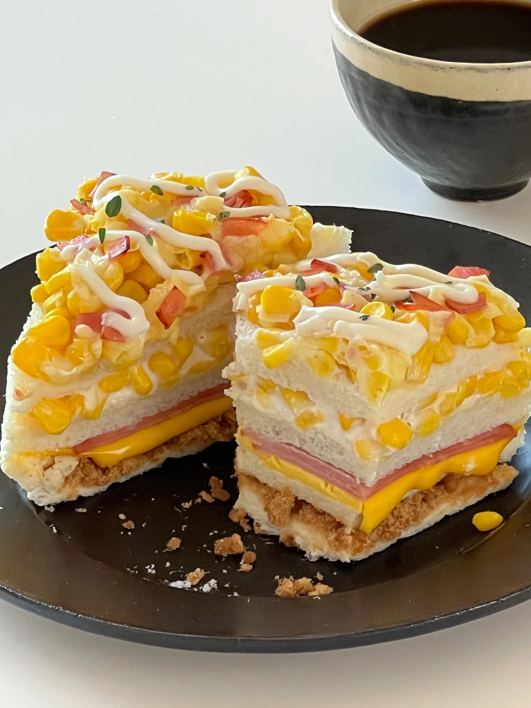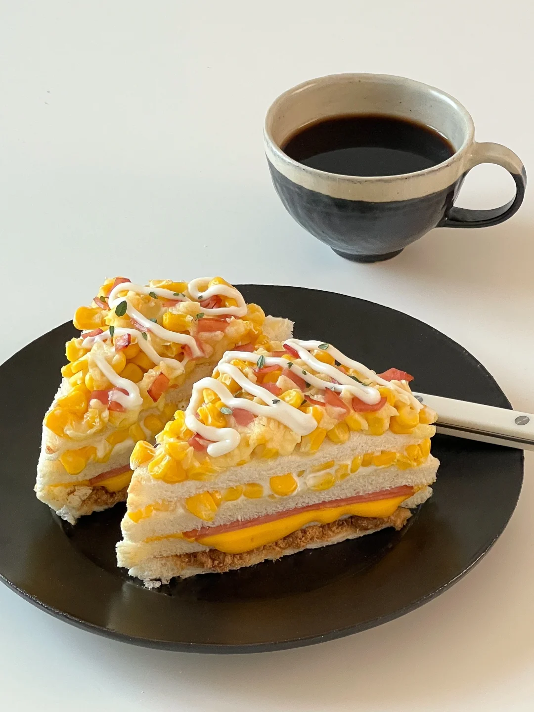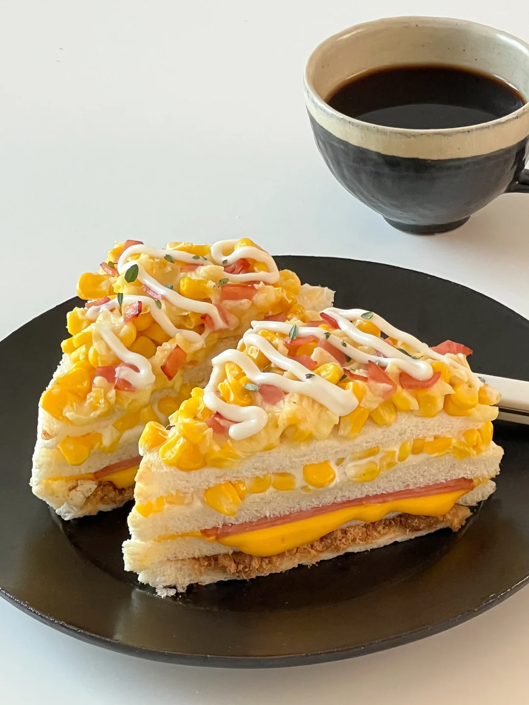 早餐brunch🍴|爆浆玉米芝士火腿三明治