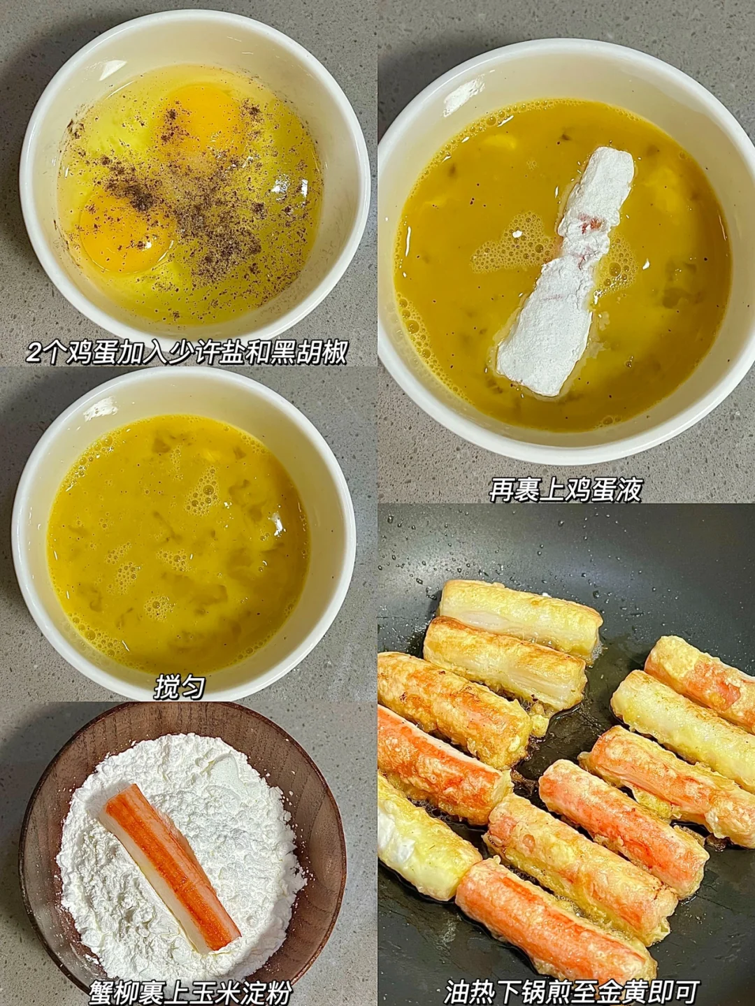 · 这个蛋与蟹柳真的是颜值和美味共存呀 金黄酥脆的外皮 加上里面鲜嫩的蟹柳 而且简单快手 简直绝了绝了~ — 🔖蛋与蟹柳 ❶2个鸡蛋加入少许盐和黑胡椒搅拌 ❷蟹柳先裹上玉米淀粉,再裹上鸡蛋液,油热下锅煎至金黄即可[扯脸H][扯脸H][扯脸H]