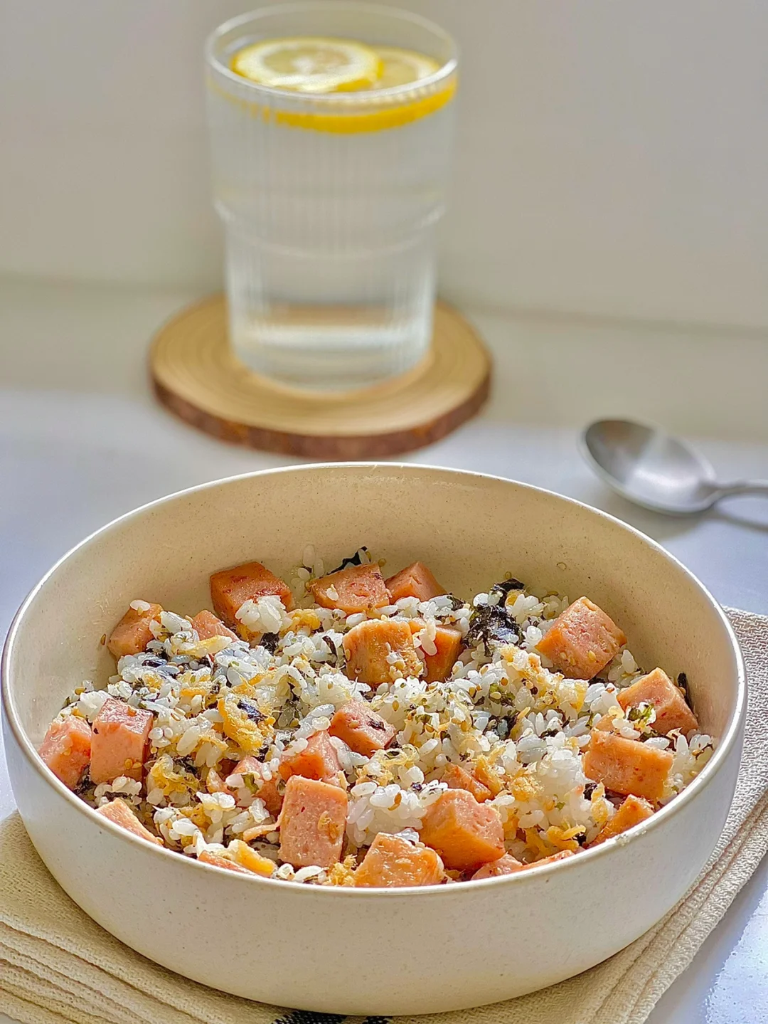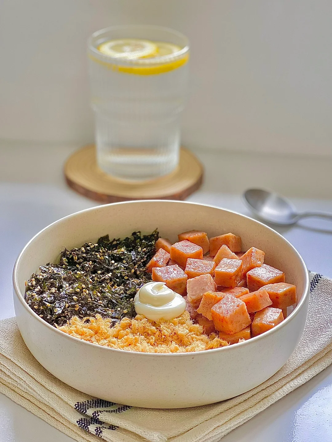 · 今天解锁拌饭新吃法! 还可以捏成小饭团当作午餐便当 这么简单还这么好吃 谁还去点外卖呀~ — 🔖海苔肉松拌饭 ❶午餐肉切小块煎至焦黄 ❷碗中放入米饭,再放上海苔、午餐肉、肉松、沙拉酱即可[扯脸H][扯脸H][扯脸H]