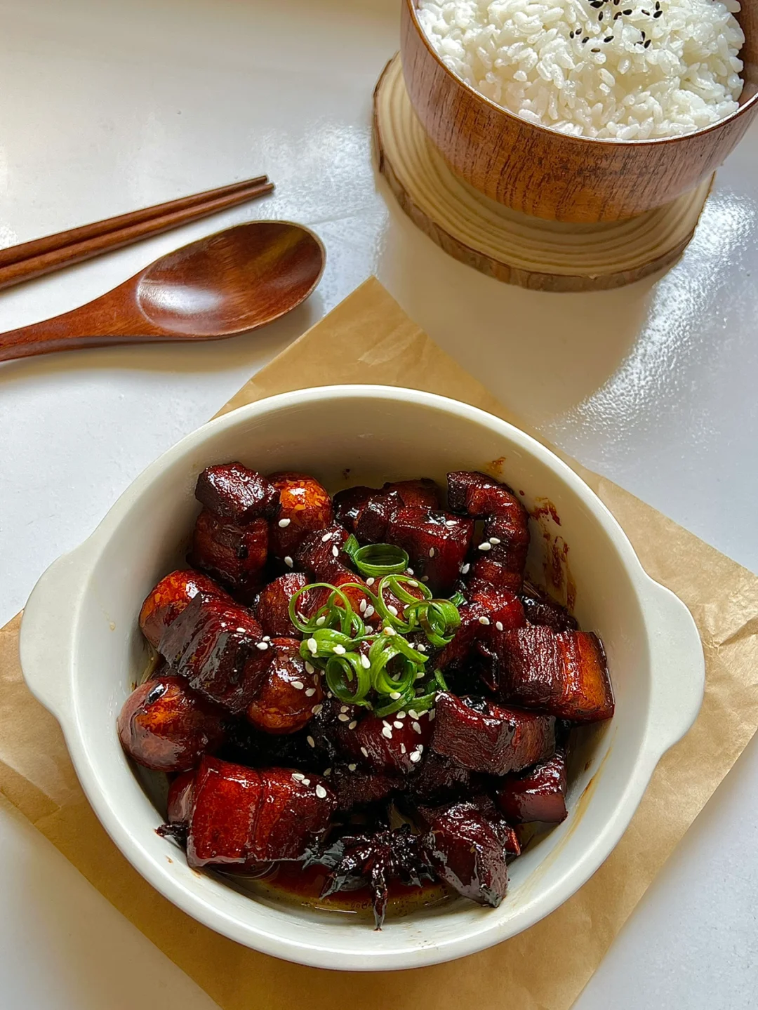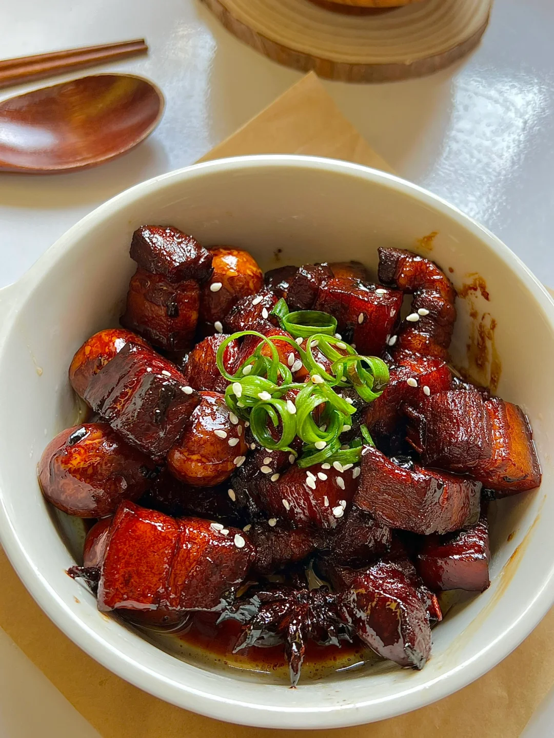 · 这个红烧肉让我干了两碗饭,Q弹软糯,甜鲜可口,肥而不腻,特别特别下饭! 今天做的是家常简易版,做法简单味道却不一般,真的绝了! 家人们,答应我这么好吃的红烧肉一定不要错过![斜眼R] — 🔖鹌鹑蛋红烧肉 ❶五花肉切块,冷水下锅放姜料酒去腥,煮开撇去浮沫捞出 ❷热油放入冰糖,熬至微焦色,放入五花肉,翻炒上色,加入葱姜、八角、香叶翻炒均匀 ❸放入1勺料酒➕2勺生抽➕1.5勺老抽,翻炒上色,倒入清水没过五花肉,放入鹌鹑蛋,煮开转小火焖煮30分钟,再开盖大火收汁即可