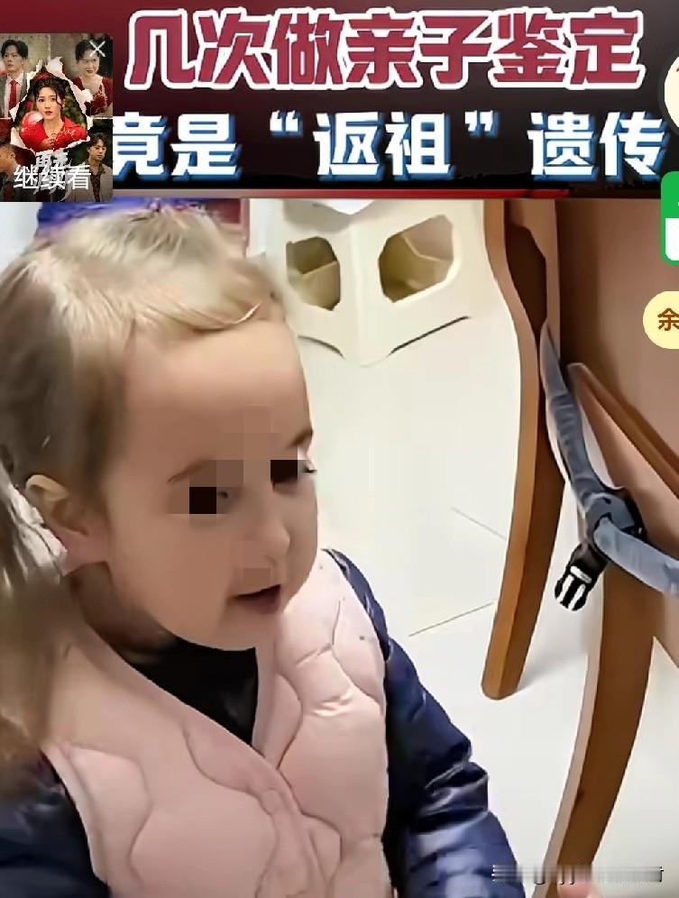想不到,“返祖的现象”真的存在!一对黄皮肤,黑眼睛的中国夫妻。竟然生出了,一个金发碧眼的混血女儿。 如果不是,孩子爸爸亲口承认!谁也想到,网友天天说:“返祖、返祖的现象,是真的! 宝宝刚出生,就有一头小卷毛和蓝眼睛。是纯的,不能再纯的白种人。夫妻俩吓坏了,做了好几次亲子鉴定,都显示孩子是亲生的。 为了寻根,两口子详细的追查了,自己的祖宗十八代。结果显示,祖太爷是斯拉夫人! 所以,这个女孩隔代遗传了斯拉夫人的血统。 这个遗传,男孩没有被显现遗传,而这个女孩却被遗传了全部。真是太劲爆了!这是,十六分之一的基因赢了,另外的十六分之十五的概率啊!真是太神奇了!