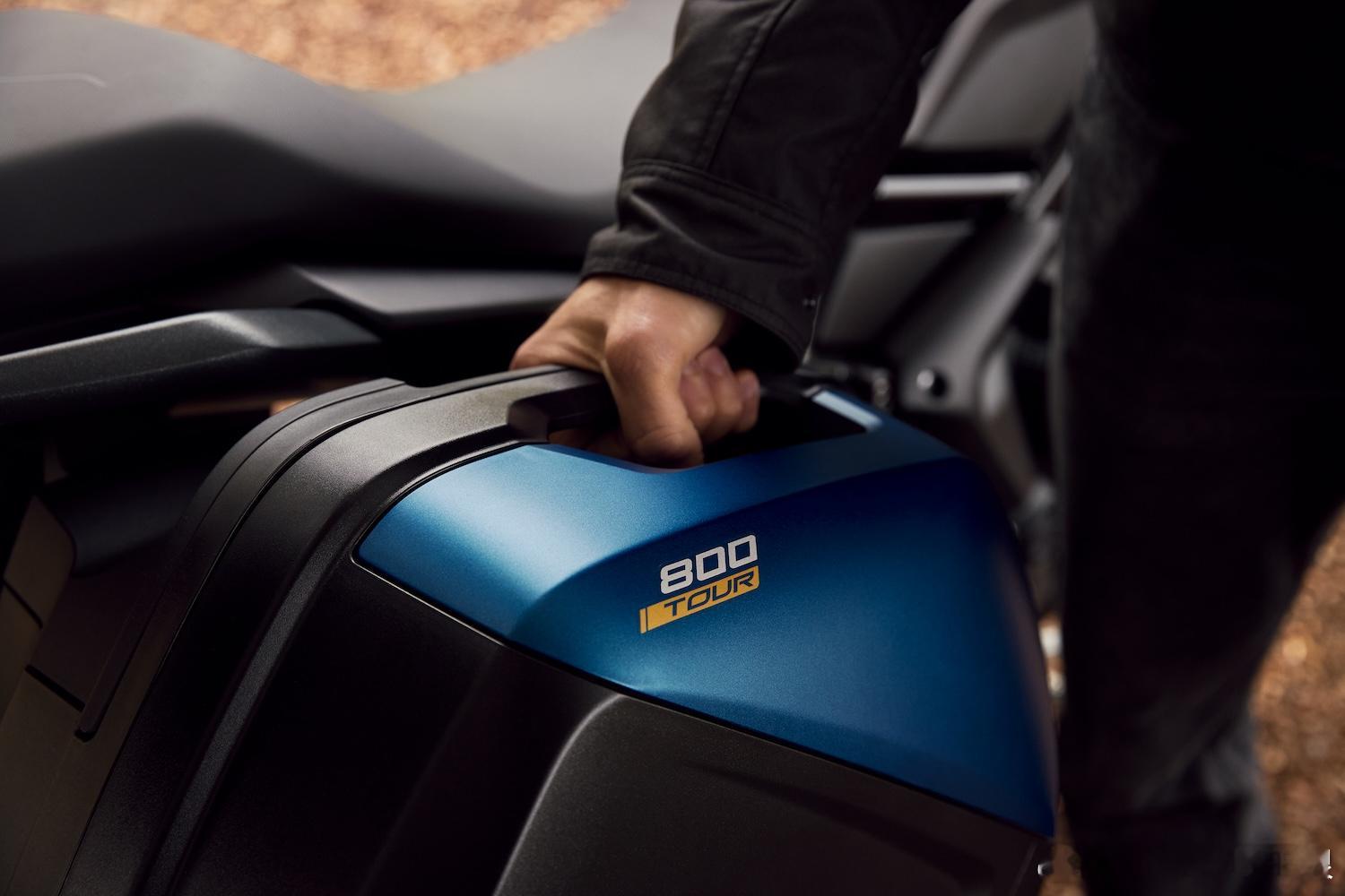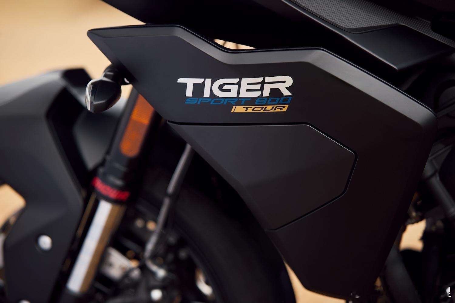 大V聊车 近日,凯旋发布了全新Tiger Sport 800 Tour。作为一款中排量旅行车,Tiger Sport 800 Tour原厂就配备了总容量106升的三箱、电加热手把、护手、舒适座椅、胎压监测,以及大撑,为长途摩旅考虑的相当周全。原厂三箱中两个边箱容量分别为57升,尾箱容量49升,凯旋宣称尾箱可以容纳两顶XL尺寸的全盔。原配的三箱带有可上锁的快拆机构,能够快速装卸,并且箱体与车身同色涂装,尾箱还有乘客靠背,非常实用。原厂配备大撑虽然会增加车重,但对于长途出行中对链条进行保养,或是遇到轮胎问题就会非常方便。而且一般原厂配备的大撑几何设计都比较合理,支车会相对轻松一些。虽然旅行装备增加了18公斤重量,但Tiger Sport 800 Tour的整备质量也保持在了232公斤,还是符合这一级别车型的整体水平的。Tiger Sport 800 Tour的前后悬挂采用了Showa的产品,都有着多种可调选项,重点是后减震配有手动阻尼调节,能够根据需要随时快速对后悬挂进行调整。Tiger Sport 800 Tour的动力是排量798毫升的并列三缸发动机,最大功率113马力,最大扭矩84牛米,配备双向电控快排系统。发动机调校非常适合长途骑行,在中等转速区间就有90%的扭矩输出。