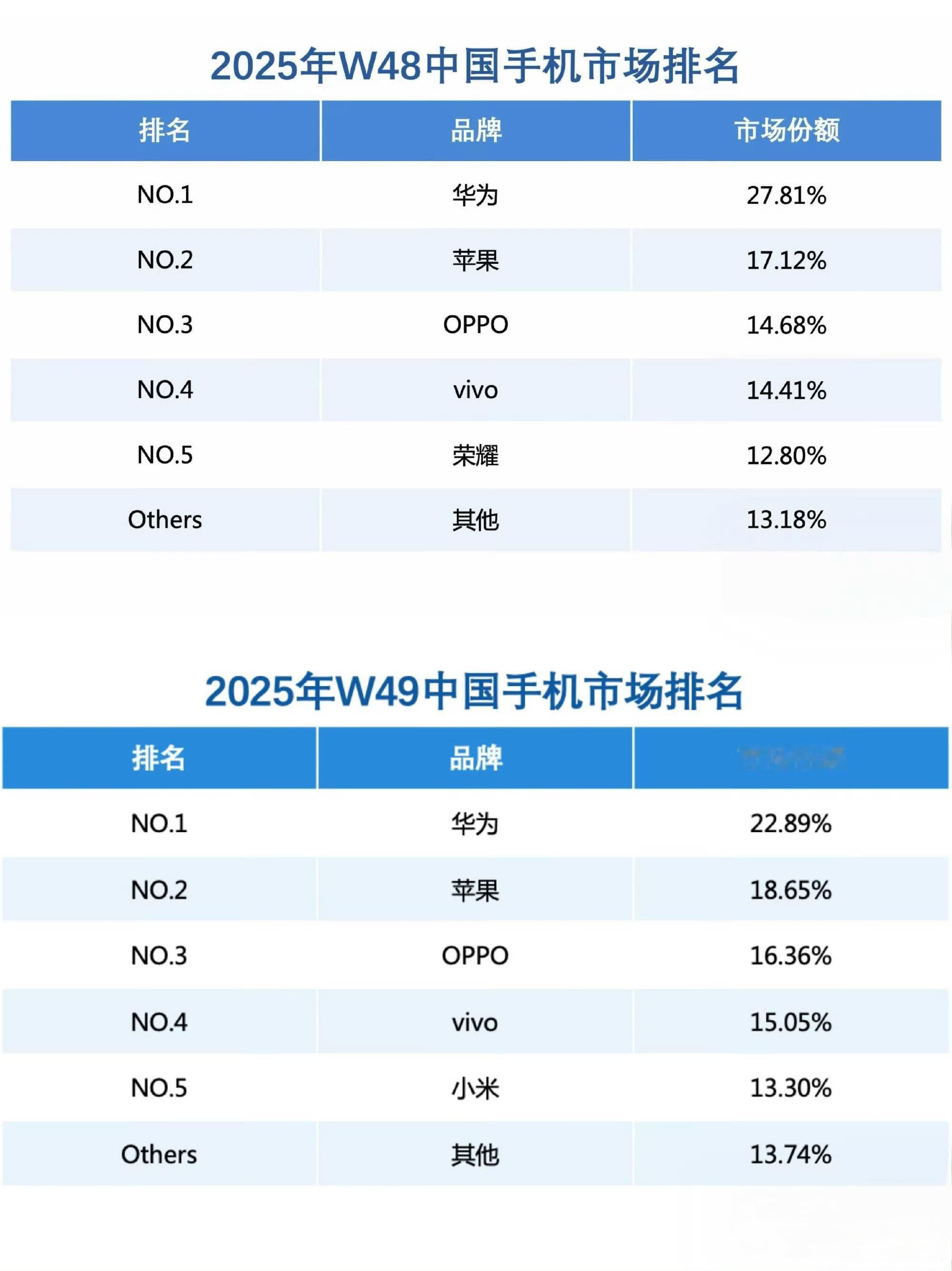 华为重夺中国手机市场份额第一 强势回归啊,华为27%,苹果17%,这领先幅度不小。华为mate80的火热程度超越iphone17啊。