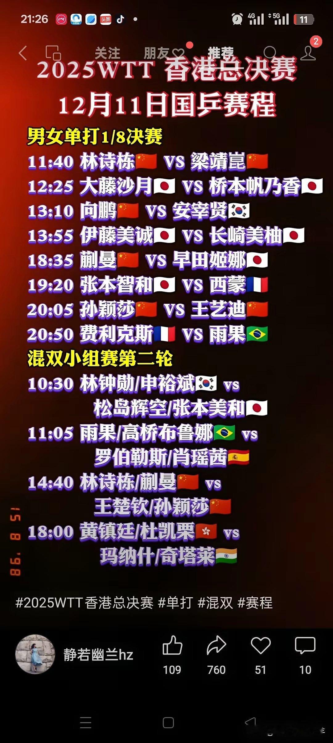 莎莎明天又是混双,又是单打,切换得过来吗,今天大头单打体力就有太给不上,赢得好累,明天莎莎又打两场,好心痛两孩子呀,我们虽然没有时间到现场加油,但会在电视机面前为中国运动员加油的。
