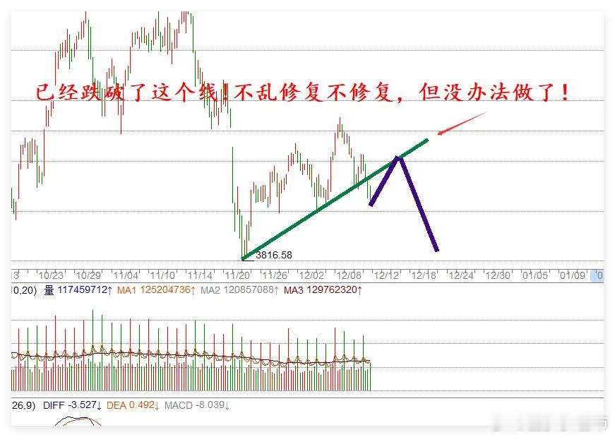12.11日收评:明天1件即将发生,A股怎么看?会跌破3816点吗?今天市场超4000多股下跌,走势和我早评的预判是一样的,高开回落,那么接下来怎么看?首先市场关注2件事:1.1件事可能是明天出结果,就是重磅会议!如果超预期可能修复,但是这个发布时间我们不好判断!2.第2件事就是日本央行的加息,目前90%经济学家预计利率上调至0.75。所以我得出的结论是,即使修复最后还是会下来,暂时没机会了!而且今天跌破了上升趋势线!还没有热点,所以我建议继续休息!