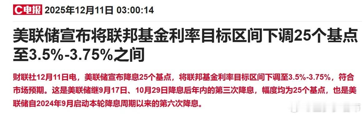 美元信仰崩塌,A+H股成新宠?这些新兴赛道或成明年黑马!明天周五,大A能反弹上涨吗?讲讲我的看法。一、大盘分析今天大A整体回撤,沪指跌27.18点,收稳3873点上方;深成指回撤1.27%;沪深两市同步走弱,两市成交额18571.1亿,较昨天小幅放量。从资金流向来看,今天通信设备行业流出最多,整体流出118亿,其次是半导体、互联网服务、消费电子、电子元件、文化传媒等,可以说TMT行业整体流出+回撤。昨日大涨的大消费+房地产行业也全线回调。今天上涨的板块主要集中在新能源风电、核能与商业航天概念。整体来看,随着美联储本年度第三次降息的预期落地,大A“买预期,卖事实”规律再度上演。但指数级别再次出现三连阴,预期明日展开反弹。二、市场消息分歧之中,第三次降息来了据财联社消息,隔夜美联储宣布降息25个基点,将联邦基金利率目标区间下调至3.5%-3.75%,符合市场预期。这是美联储继9月17日、10月29日降息后年内的第三次降息,幅度均为25个基点,也是美联储自2024年9月启动本轮降息周期以来的第六次降息。我昨天就分析过,“外行”才会盯着单次加减息的结果,“内行”要看点阵图代表的利率趋势。虽然本次会议结果预期降息25个基点并扩表,但点阵图却显示,明年降息的幅度却十分保守。在降息讨论中,有人提出降息50个基点,结果有7人反对,该分歧是37年来最大;同时,会后声明表明,降息条件删除了失业率保持低位的提法,意味着明年降息门槛更高。相关机构预测明年只会降息一次。美联储的独立性遭到质疑,顺带着美元的“无风险”特点+美元体系稳定性,都遭到了市场质疑。2026年,全球资产定价将发生重构,这或是较大预期的事。换句话说,当“美元信仰”崩塌,流动性的选择会更加多元化,A+H股的组合,或有望成长为新型的资产之锚。三、后市展望1、岁末机构业绩收官阶段,调仓缩筹、锁定利润成为常规操作,所以我一直提醒大家,新周期会从1月份开始。12月份,“轻仓、跟随、获利既出”。2、长周期不用担心,资产重构是新游戏的开始,流动性本就是服从地心引力的,全球低估的A+H股市场的潜在价值是有目共睹的。3、继续布局新兴赛道中的低位题材,特斯拉概念、人形机器人概念、商业航天概念、长寿药概念都是不错的选择,相关赛道可继续观察。股市分析股市第一线股票财经股票交流股票大势A股财经