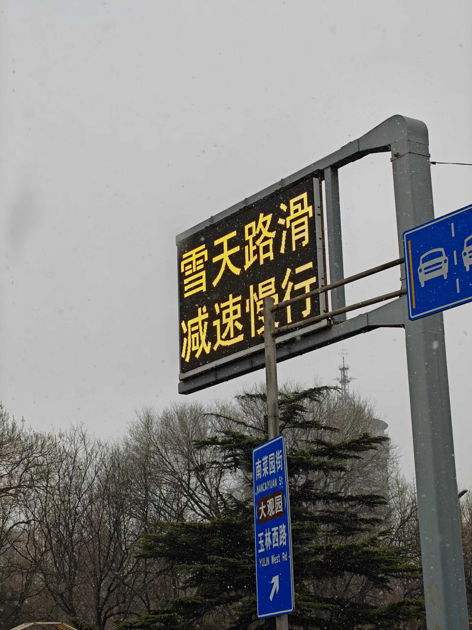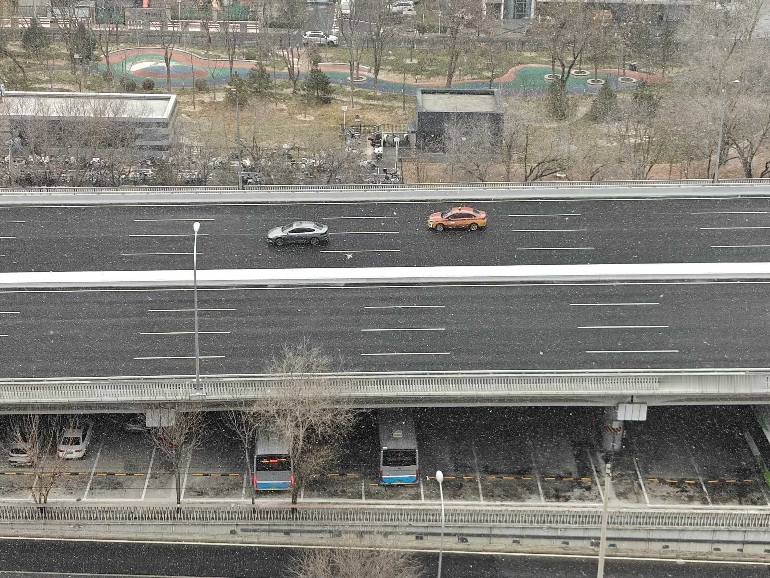 北京下雪 北京迎来第一场雪市区来要慢一点儿,大家都切换成等雪模式了~骑车出行的小伙伴小心道路湿滑,注意安全。