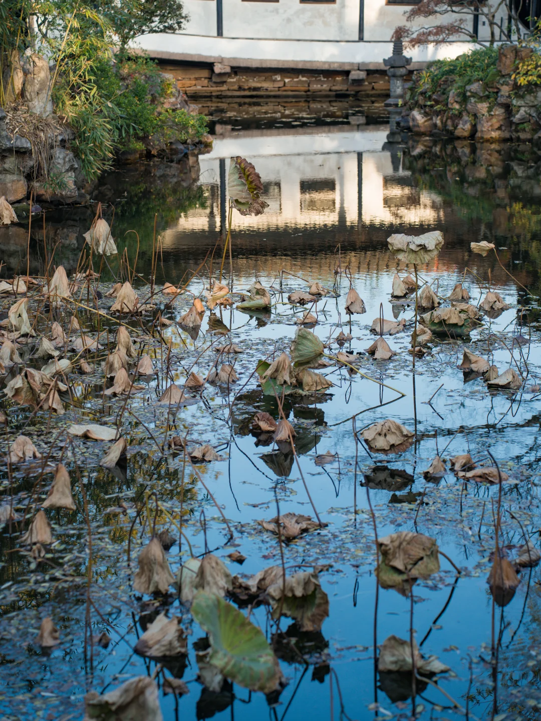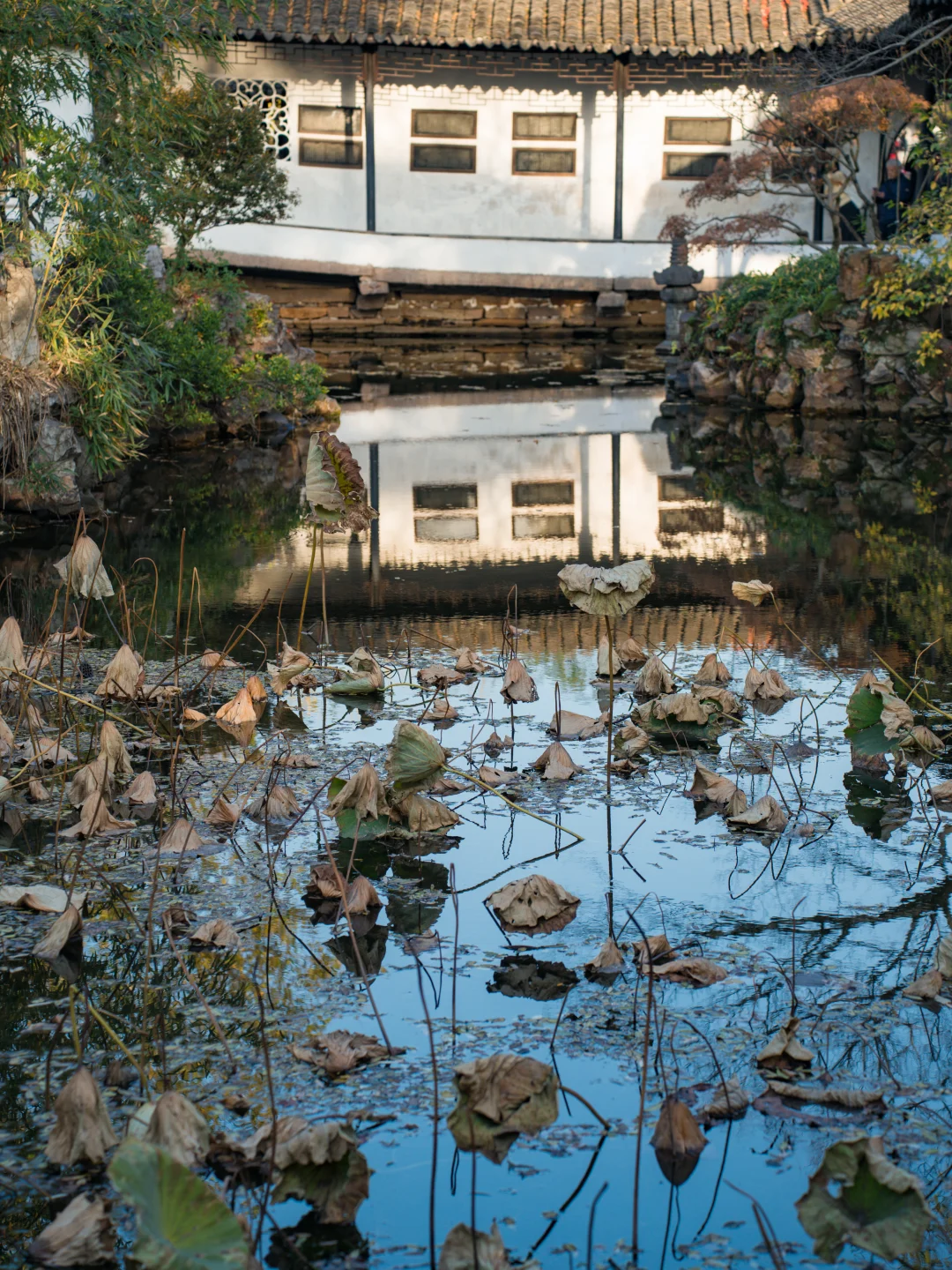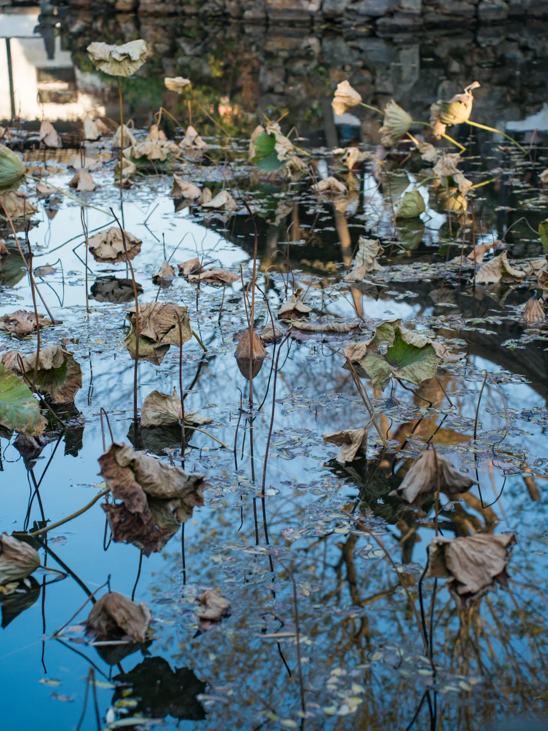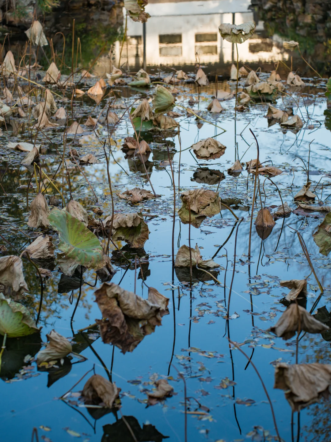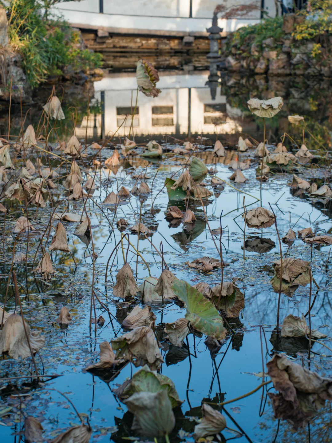 都在排队宜两亭 我回头看到满池残荷 突然觉得像无数支笔 蘸着暮色, 在水的宣纸上写着属于园林的诗 “美,不总是圆满的盛大。” 原来凋零可以这样磅礴 像一场沉默的、关于时间的展览 每一株残荷都在讲述 比盛放时更深刻的故事…… - 📍拙政园 -