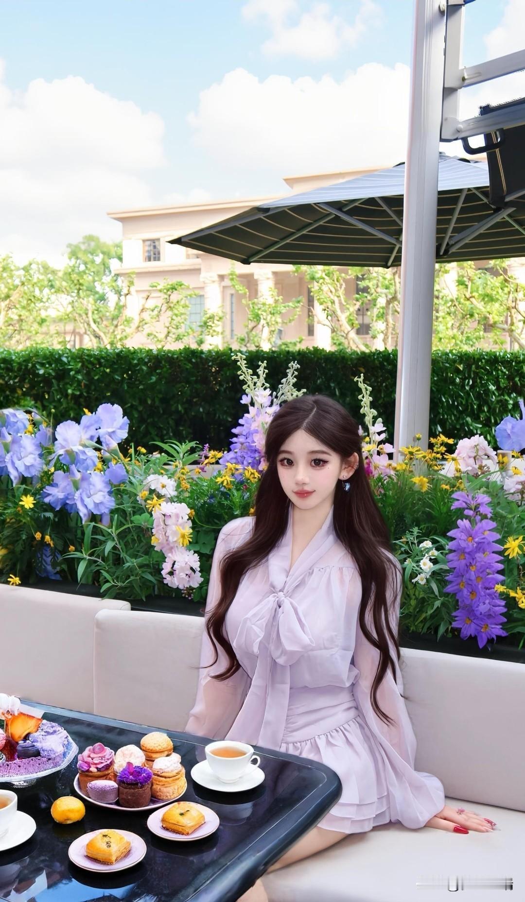 夏径间的浅蓝清光夏风裹着花气漫过园中小径时,她像浸在了晴日的软光里——浅蓝