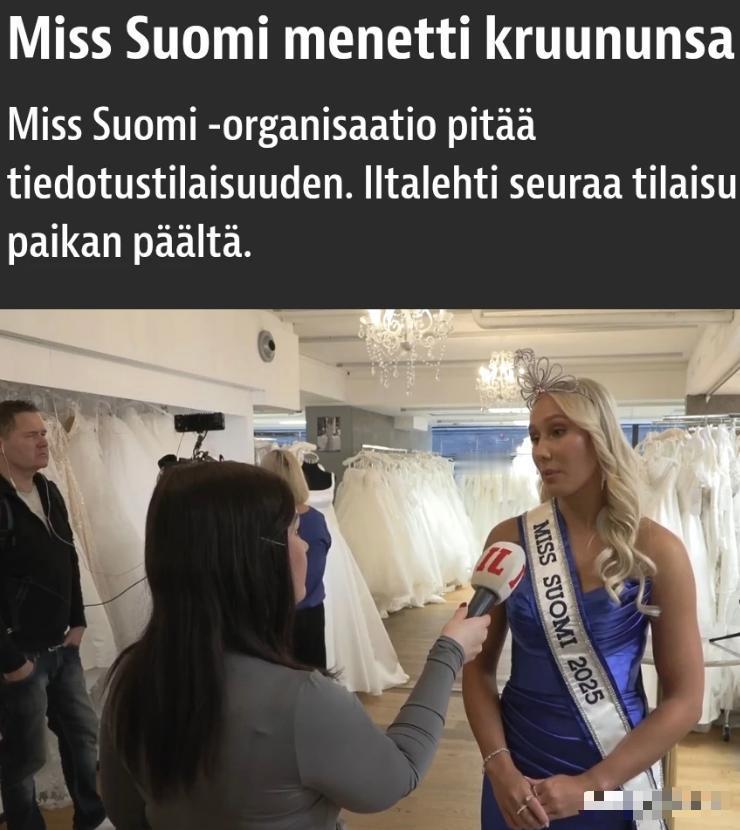 这个女子估计是世界上最短命的选美小姐。 刚当选的芬兰小姐竟冲着镜头做着眯眯眼的动作,很快她就尝到了苦头。 赛事主办方毫不含糊,直接开启了换人直播,当场把象征芬兰小姐的桂冠给了别人。 上一秒在云端,下一秒就跌进了泥坑里。 都说不作不会si,这个女人是凭实力把自己给作没的。 原来,这个名叫Sarah女子参加了芬兰举办的选美比赛,并成功拿下桂冠,成了名副其实的芬兰小姐。 万万没想到的是,她竟然在公开场合对着镜头拉眼角,做出眯眯眼的动作。 更让人气愤的是,她还配上了一句:和ZG人吃饭。 这个动作,让所有人都破防了。 她在网上开始被网友讨伐。但她本人并不以为然,在社交媒体上,更新一条自己坐商务舱的样子,意思是:你们能拿我怎样? 网上很多国人及亚裔纷纷发声,要求她道歉。事态正在以不可控的速度发酵。 这女的就开始作妖了:一会儿联络媒体声惨,一会说自己当时没拉眼角,只是突然头疼眼睛疼。 网友可不会吃她这一套,继续冲进官方评论区讨伐。 主办方终于顶不住了,剥夺了她的冠军头衔,并将荣誉给了她的竞争对手。 这女子也不看看现在得罪的是谁? 搬起石头砸自己脚的感觉就是这样酸爽!