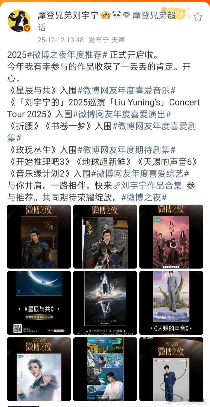 刘宇宁有幸收获了一丢丢的肯定刘宇宁影视音乐综艺全入围全领域入围是综合实力的证明,