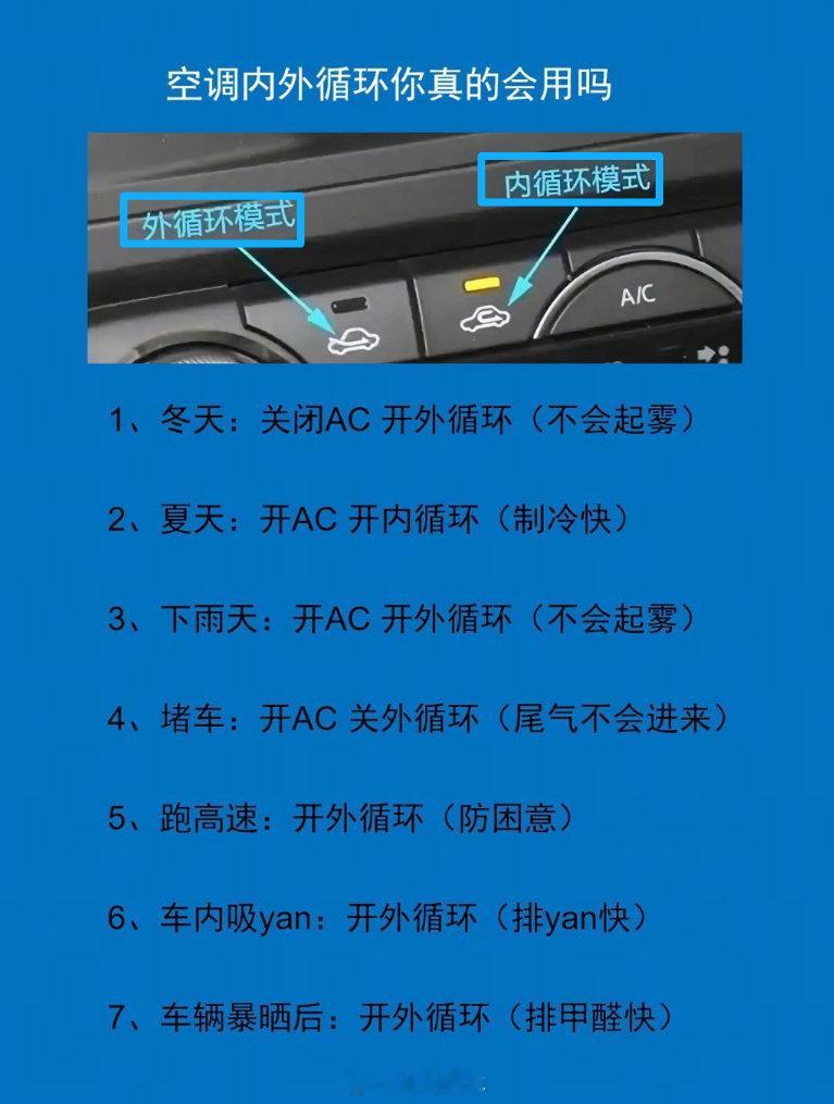 汽车空调循环如何用,一张图搞定