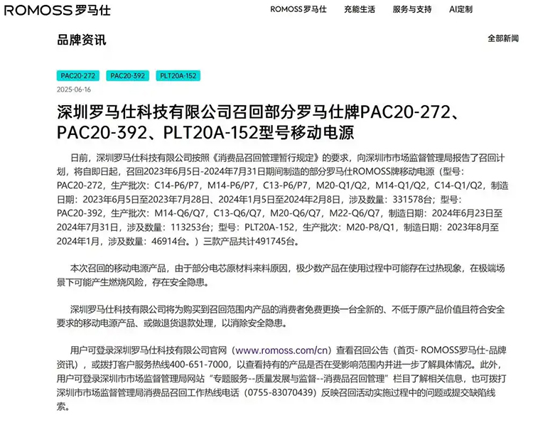 7月份罗马仕因充电宝起火爆炸,陷入高校禁用、旧品召回、民航禁令。据深圳市市场监督管理局网站显示,深圳罗马仕科技有限公司因违反强制认证规定、虚假宣传案,被深圳市市场监督管理局南山监管局没收违法所得1.2万余元、罚款123万元。