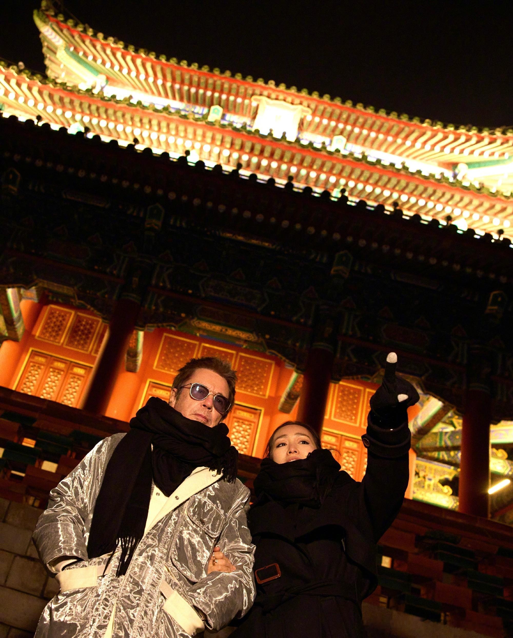 巩俐和老公打卡北京中轴线 巩俐和老公让雅尔打卡北京中轴线:永定门-先农坛-天坛-正阳门-天安门-景山,让雅尔微博晒照,夫妻俩亲密依偎、亲吻额头、一起自拍,很幸福。