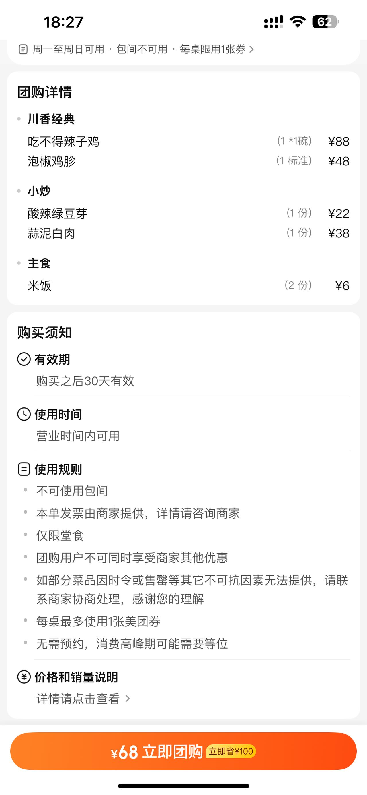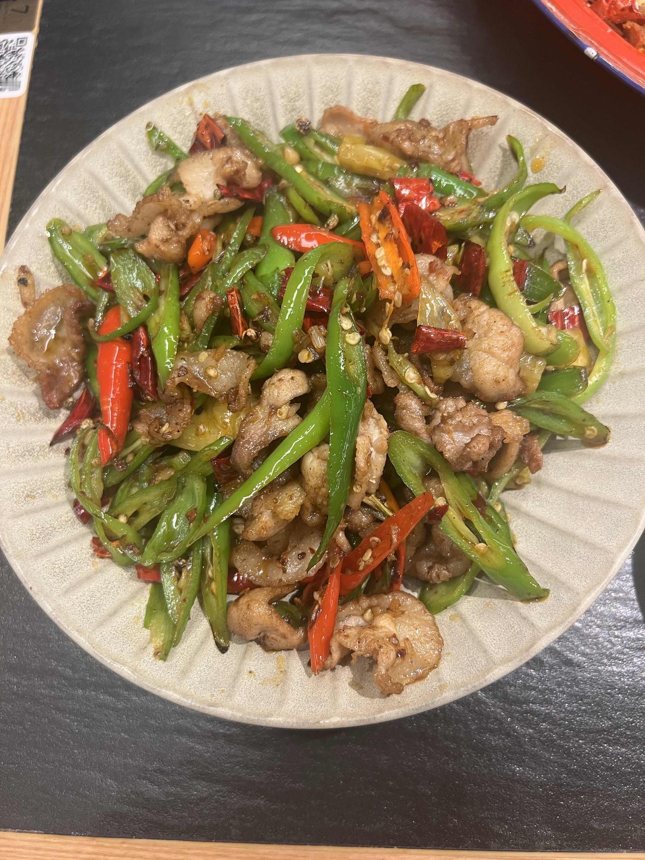 真不知道店家怎么赚钱 这一大盘子辣子鸡、一盘六七片蒜泥白肉、一盆泡椒鸡胗和一碗酸辣绿豆芽,外加米饭和一盒纸巾,团购只要68元。 真不知道店家怎么赚钱,以至于感觉不好意思又点了一份辣椒炒肉,这一道菜的价就几乎相当于前面所有这些菜的总价了。 真想不明白这怎么赚钱