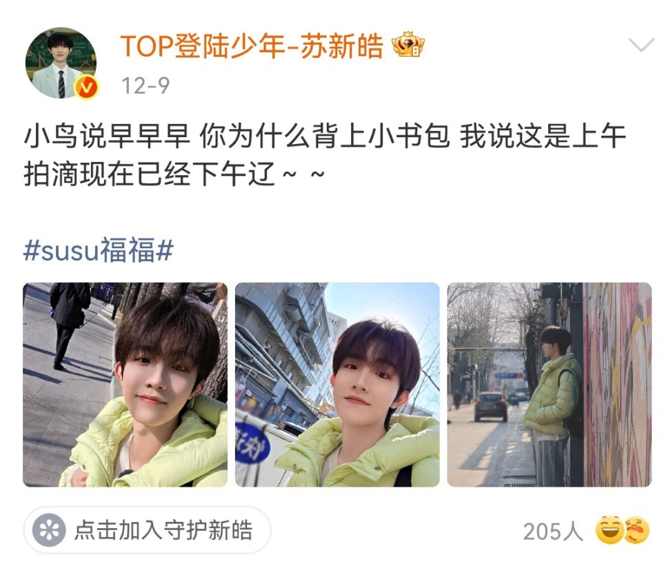 翻了翻苏新皓的微博,他作为爱豆很有事业心很会营业,更新的很频繁文案超有活人感,不是分享日常就是发唱歌或者跳舞的视频,自己学剪辑拍vlog,每个月还给粉丝更新网盘营业,真的很厉害苏新皓晒北京的雪