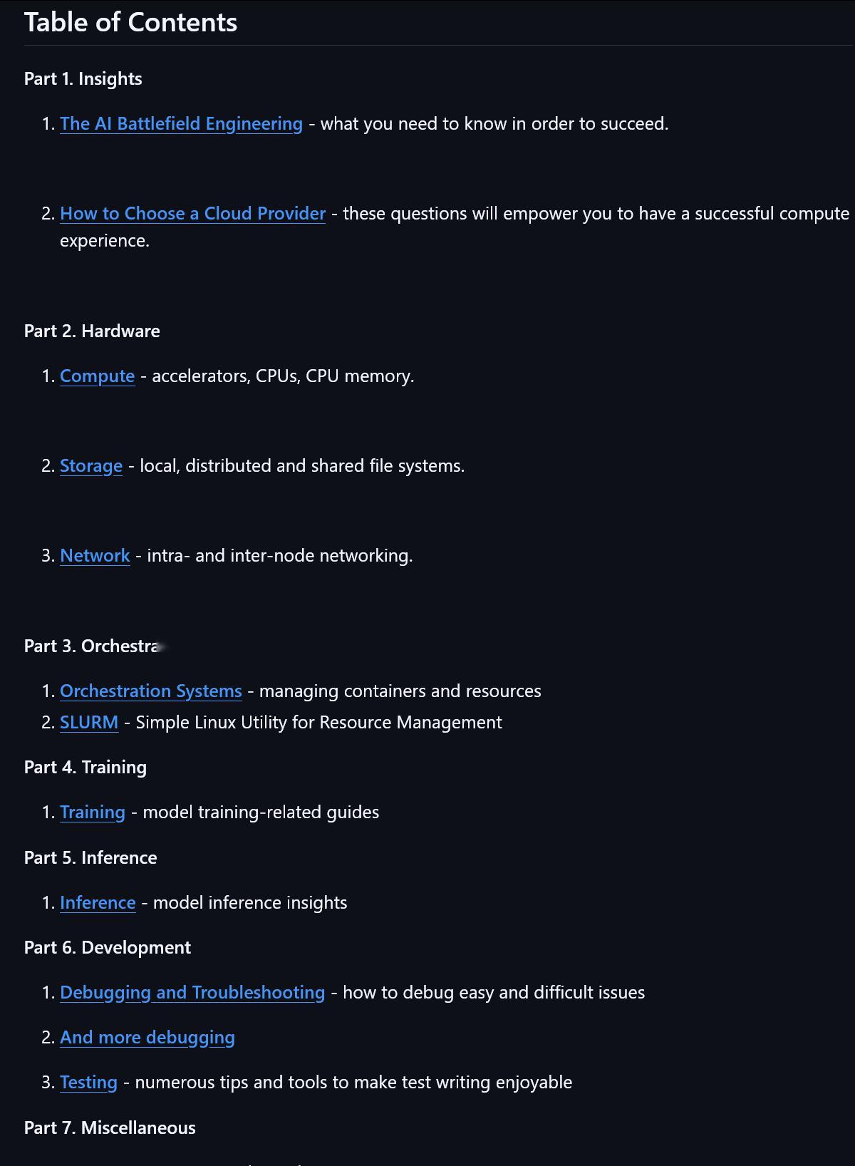 Machine Learning Engineering Open Book(机器学习工程开放书)github.com/stas00/ml-engineeringStas Bekman创建并维护的一份开源技术指南。该项目旨在收集和分享关于大语言模型及多模态模型训练、微调和推理的实用方法论、工具及详细步骤。内容从底层硬件(计算加速器、CPU、内存)到软件基础设施(文件存储、网络、SLURM 调度系统)的各个层面,特别关注在大规模分布式系统中遇到的调试、优化和测试等工程难题。对于希望深入了解如何构建高效 ML 训练集群或解决实际训练崩溃问题的机器学习工程师和研究人员来说,这是一份极具价值的实战手册。科技先锋官