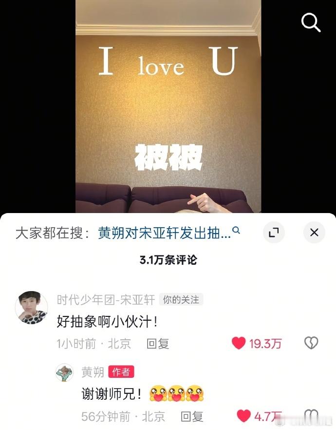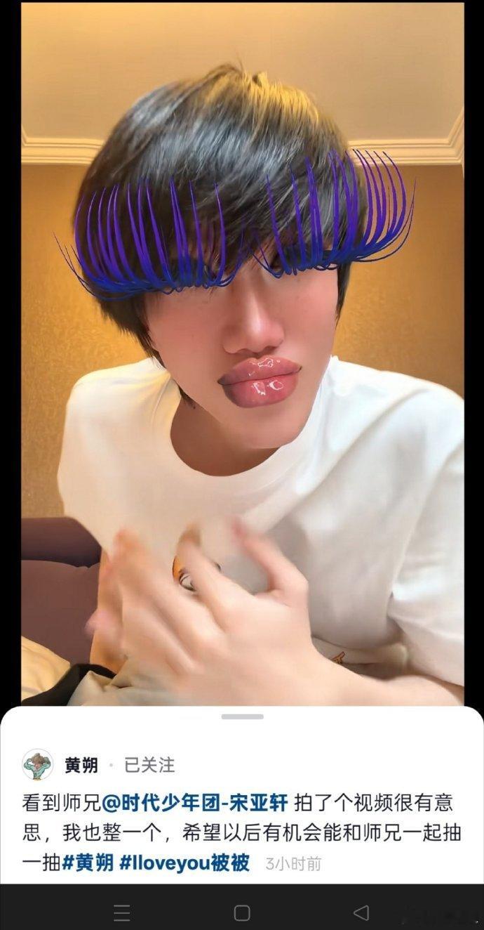 宋亚轩回复了黄朔黄朔对宋亚轩发出邀请合拍,宋亚轩回复:"好抽象啊小伙汁";黄朔随
