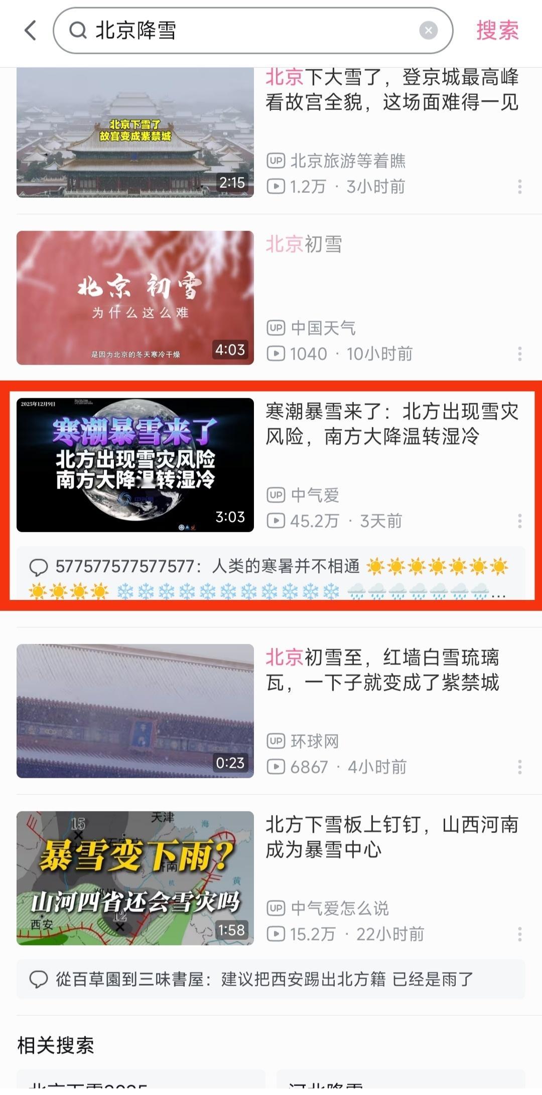 北京的初雪让故宫门票秒空!本轮降雪自12日凌晨从延庆、门头沟等西部山区开始,中午前后城区明显增强,雪量“惊人”,除了观雪赏美景,破站up中气爱也科普了下近期全国降温降雪趋势:南方大降温转湿冷,北方出现雪灾风险。提醒朋友们做好防寒保暖,本轮寒潮暴雪对交通的影响也值得有出行计划的重点蹲下up的更新关注一下天气情况哈!北京暴雪北京下雪