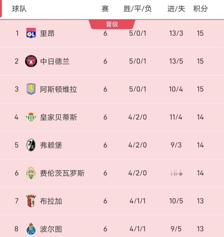 欧联积分榜积15分的有三支队伍,里昂、中日德兰、维拉都积了15分,并且维拉各项赛事已8连胜,维拉接下来的欧联比赛对手分别是费内巴切、萨尔茨堡红牛,维拉直接晋级的机会非常大。 本赛季欧联参加欧联的英超球队分别是维拉、诺丁汉森林,比起上赛季曼联、热刺这些球队都参加欧联,本赛季的欧联维拉确实属于实力分子,当然主教练埃梅里本人也是非常擅长欧联夺冠,他曾拿到4座欧联冠军奖杯,维拉也被视为本赛季欧联夺冠的热门球队。 当然说到欧联,也不得不提里昂这支球队,上赛季它打进了8强,总比分6-7不敌曼联而遗憾出局,本赛季欧联它排在第一,这支球队在欧战上的态度值得称道,比起垫底的一场不胜的尼斯不知道强了多少倍。 而本赛季意甲球队对于欧联也不那么热衷,它们好像更愿意在意甲一争高下。