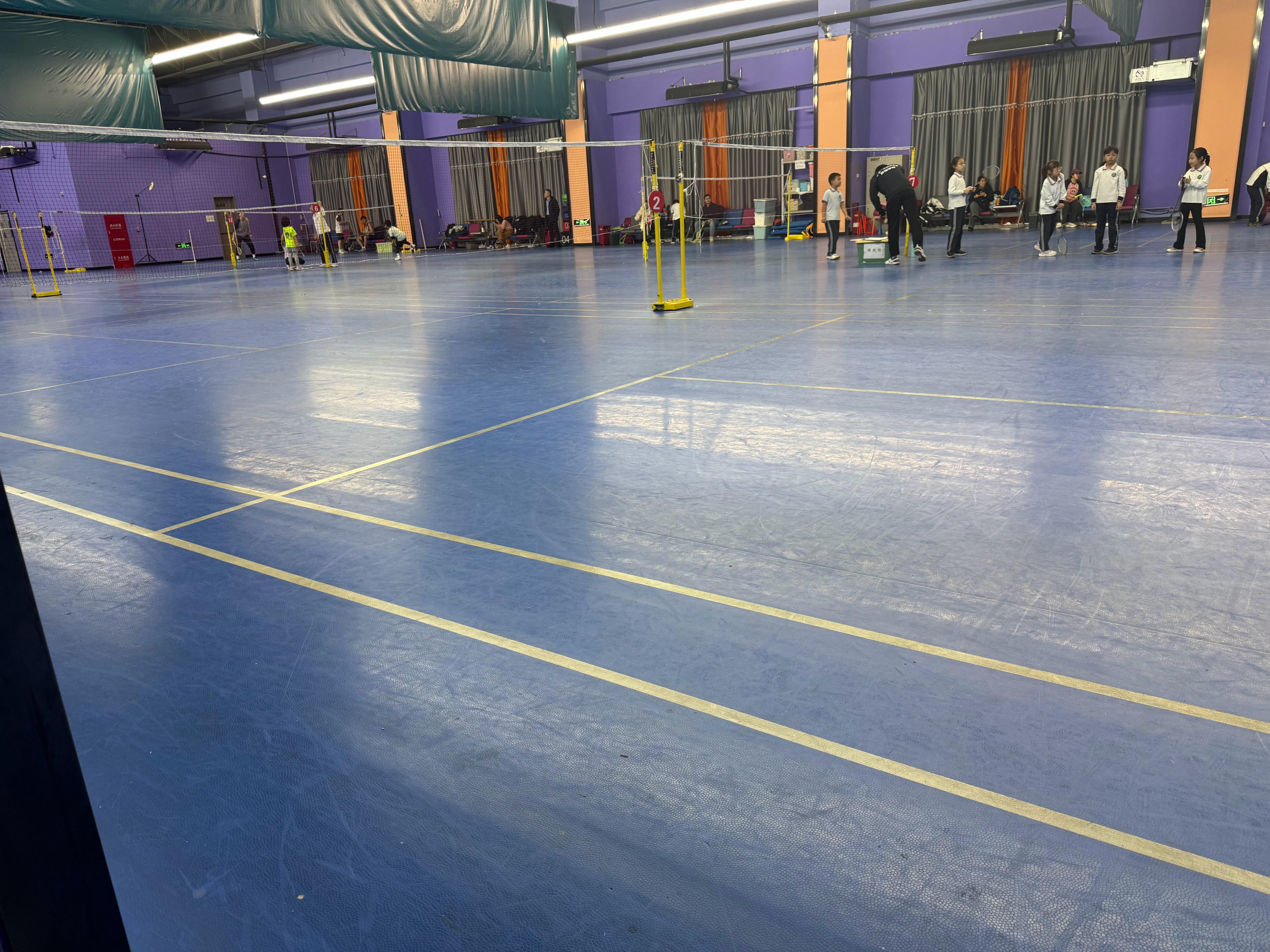 刚放学,就陪妹妹来打羽毛球了。虽然我的腿昨天伤到了,但和她随便打打应该没什么问题