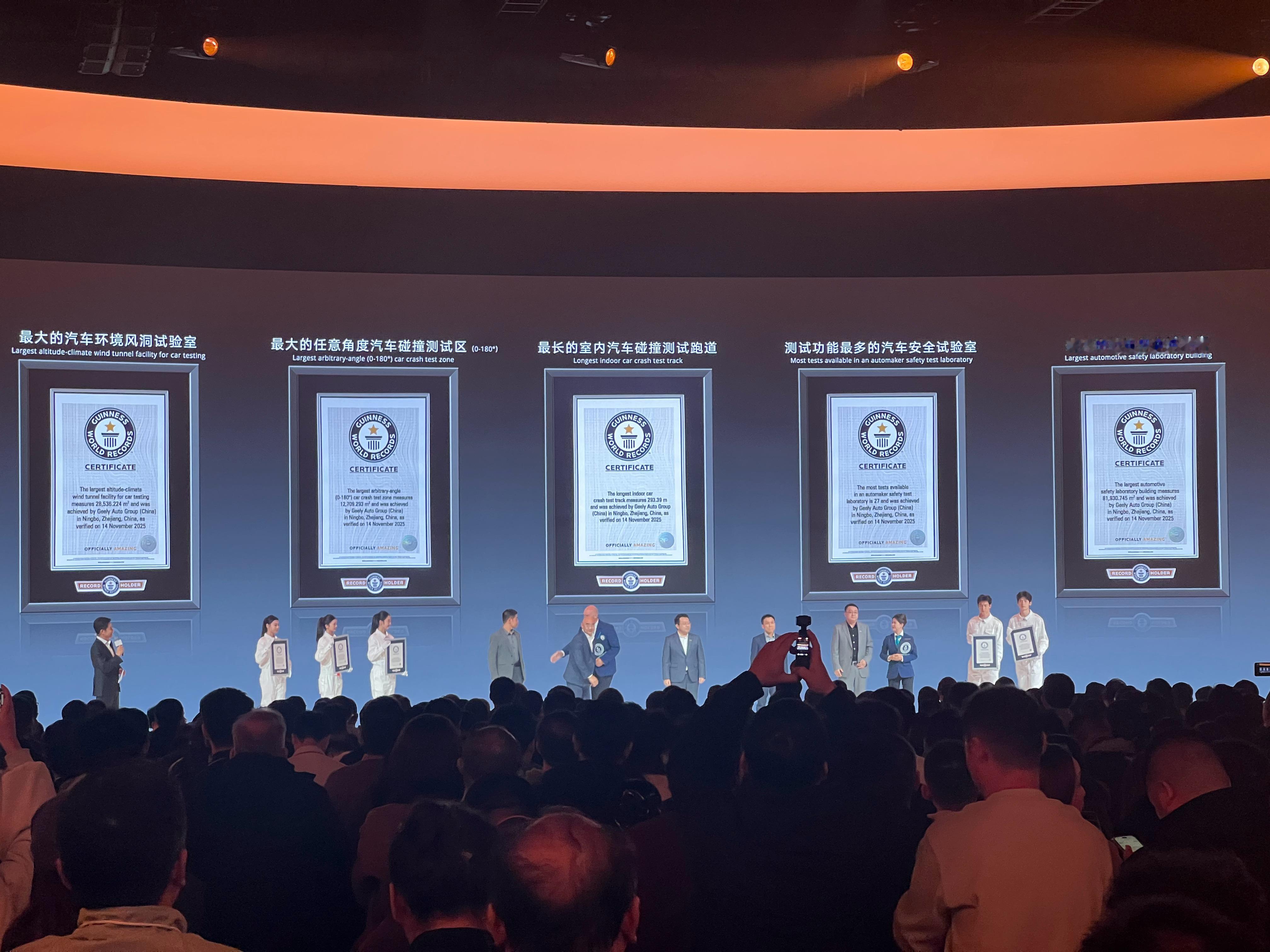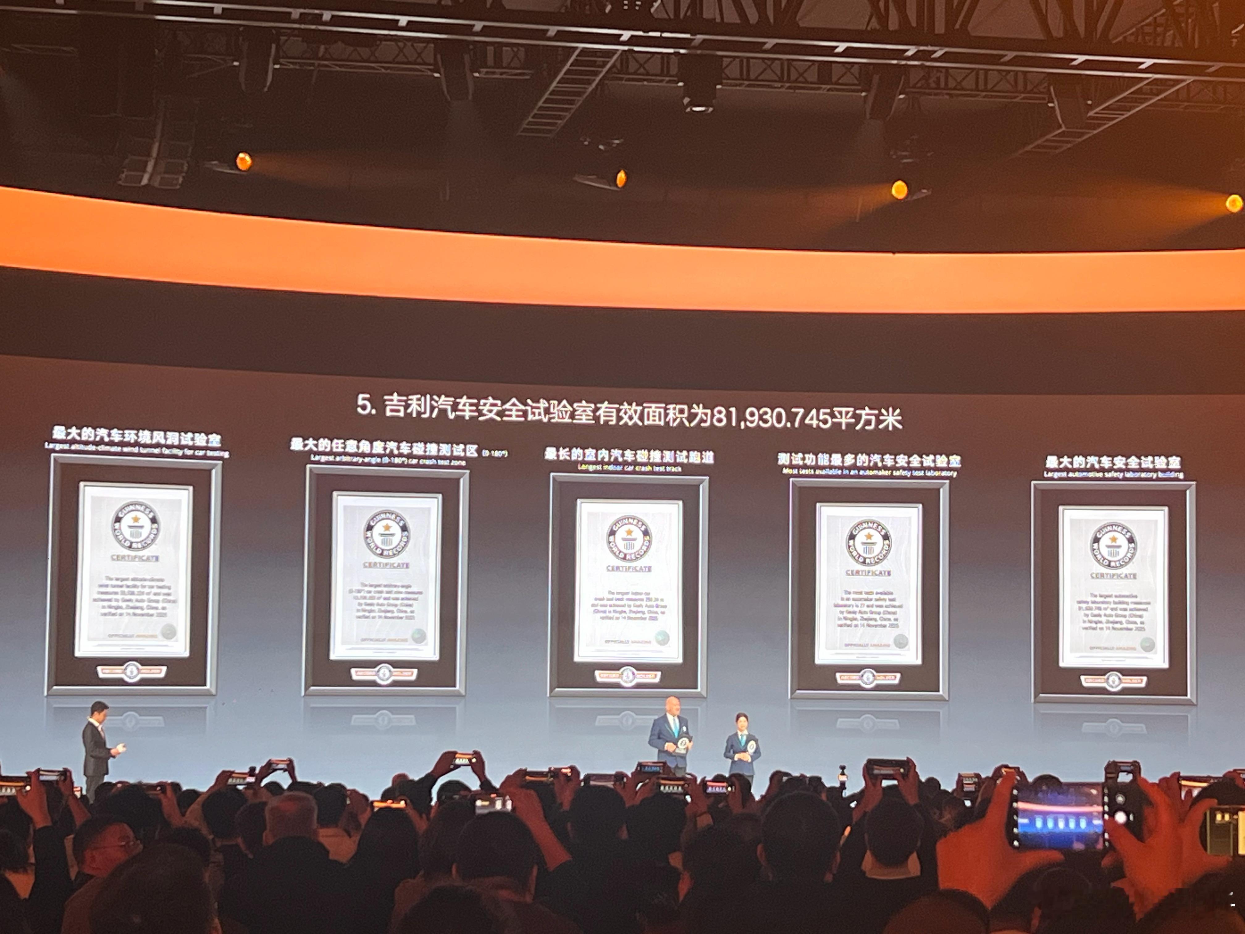 吉利今晚太炸了!一口气拿下五个吉尼斯世界纪录,直接把“安全就是吉利”这句话焊在了行业天花板上。首先是最大的汽车环境风洞实验室,吉利这是要把自然环境搬进实验室,以后什么极端天气都能模拟,安全性直接拉满!第二是最大的任意角度汽车碰撞测试区(0-180°)360°无死角碰撞测试,连翻车这种小概率事件都不放过,安全感爆棚!3. 最长的室内汽车碰撞测试跑道,吉利对安全的较真,连跑道长度都要卷到世界第一,这波操作我服!4. 测试功能最多的汽车安全试验室,各种黑科技测试全上,吉利是真把安全做到极致了。5. 最大的汽车安全试验室,吉利用实力证明,对安全的投入永远不嫌多!吉利这次用五个世界纪录告诉大家,安全不是说说而已。这些硬核投入,不仅是吉利的荣誉,更是给消费者的承诺!我国安全中心拿下五项世界纪录 李书福称五星只是安全的门槛