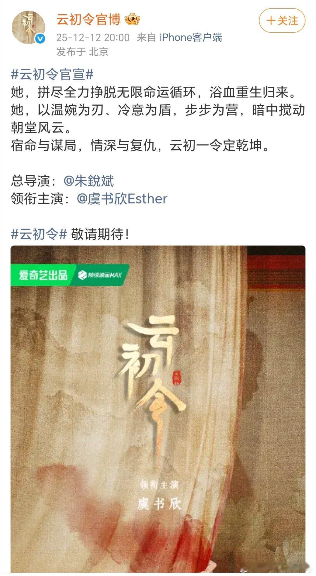 云初令官宣虞书欣的事已经澄清了吗?《云初令》官宣,《双轨》空降播出,之前柠萌的那部《一念江南》是不是也要重新开机? 一念江南