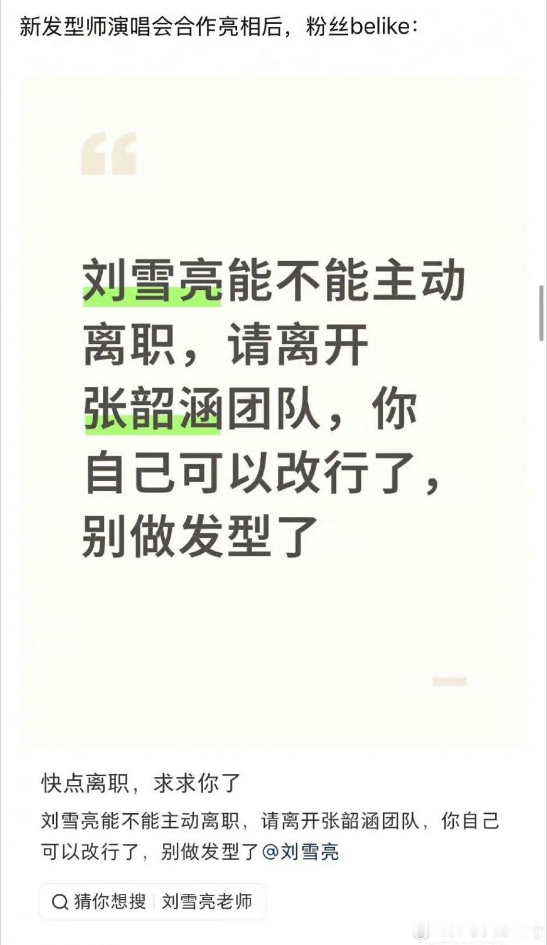 张韶涵粉丝也太奇葩了吧,因为把前造型师parco撕跑,现在来了一个新造型师,给张韶涵做了很多大妈造型,导致她被吐槽像庆奶,现在粉丝又后悔了,吵闹着要前造型师回来,话说歌手圈粉丝都这么🐮吗?
